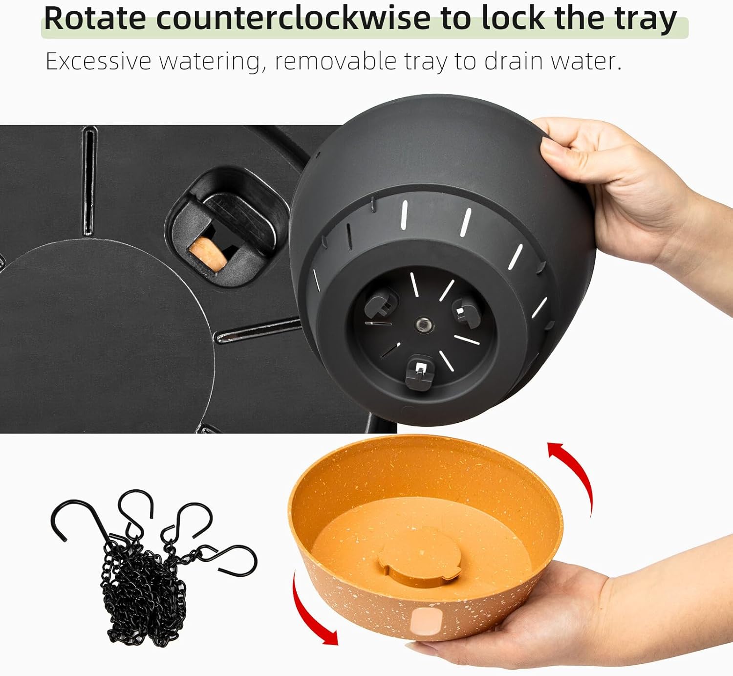 - SNAP-IN TRAY & WATER STORAGE: Snap-in tray is convenient to clean hanging plant pot. Hanging pots can overflow excess water from the edge, and the tray will store 7-14 days water for plants