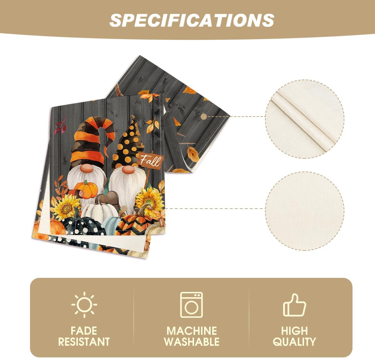 Artoid Mode Fall Gnomes Pumpkins Sunflower Maple Leaves Thanksgiving Table Runner, Seasonal Harvest Vintage Kitchen Dining Table Decoration for Indoor Outdoor Home Party Decor 13 x 36 Inch