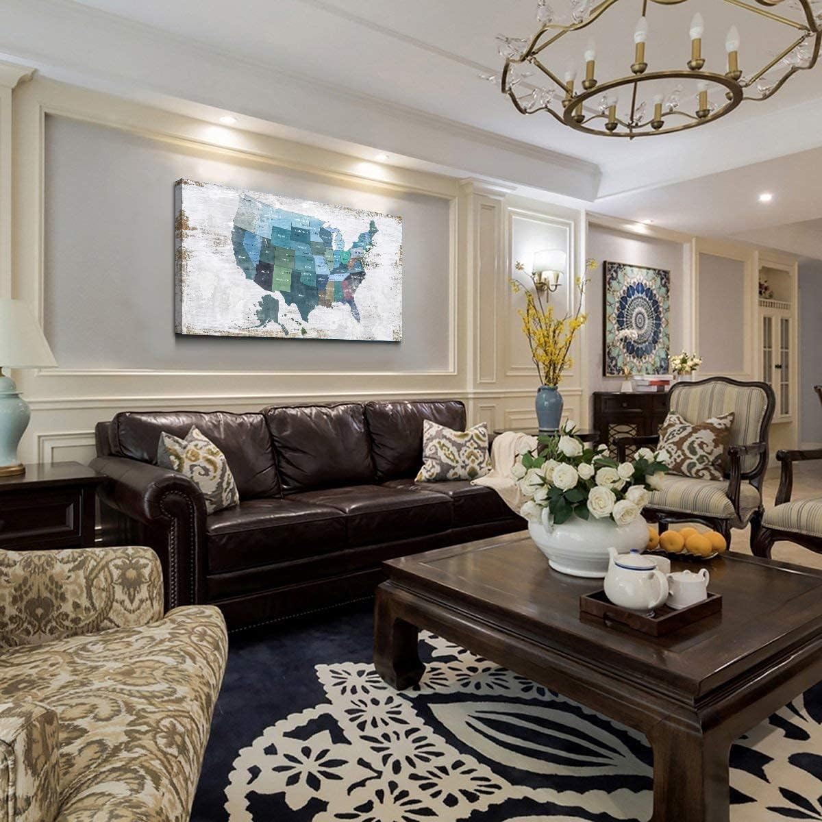 Map of The United States Wall Decor Map Canvas Wall Art for Wall Decoration Wood Background USA Canvas Prints for Bedroom Office Kitchen Home Wall Decor Framed Artwork Ready to Hang20 x40