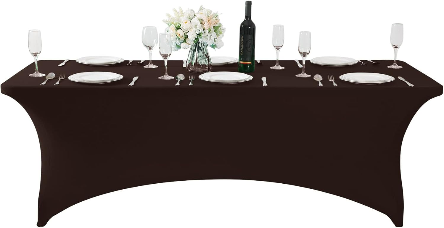Spandex Table Cover for 8FT or 4ft or 6ft Table Universal Fitted Stretch Tablecloth for Party, Banquet, Wedding and Events-Chocolate