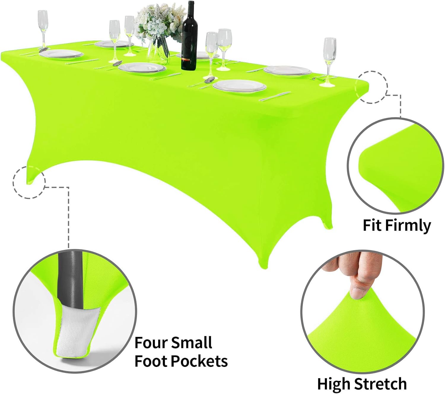 - Easy to use: Easy to set up with four-way stretch spandex material and four pockets for legs are designed for keeping the tablecloth securely in place to fit your table better.
