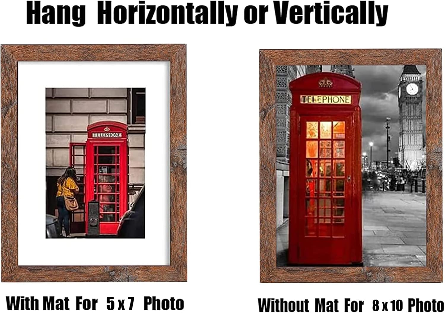 - 【READY TO HANG】Our 8X10 frame rustic brown includes hanger hooks to hang artwork or photographs easily, display horizontally or vertically to fit in for collage for wall or display on desktop and Gallery wall frame set