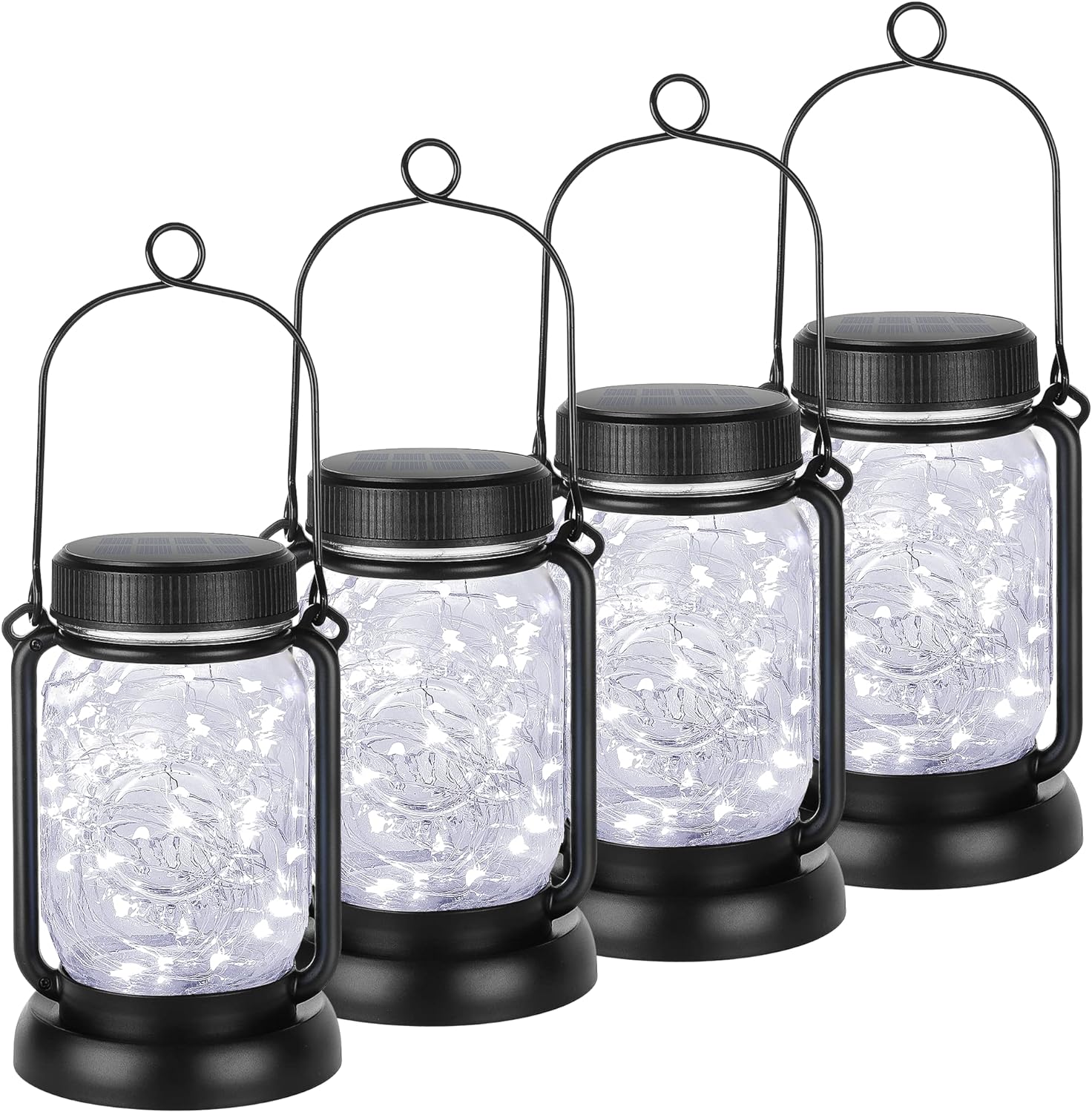Mlambert Cool White 4 Pack Solar Hanging Mason Jar Lights with Stakes, Waterproof Decorative 30 LEDs Outdoor Solar Lantern Lamp Patio Garden Tree Yard