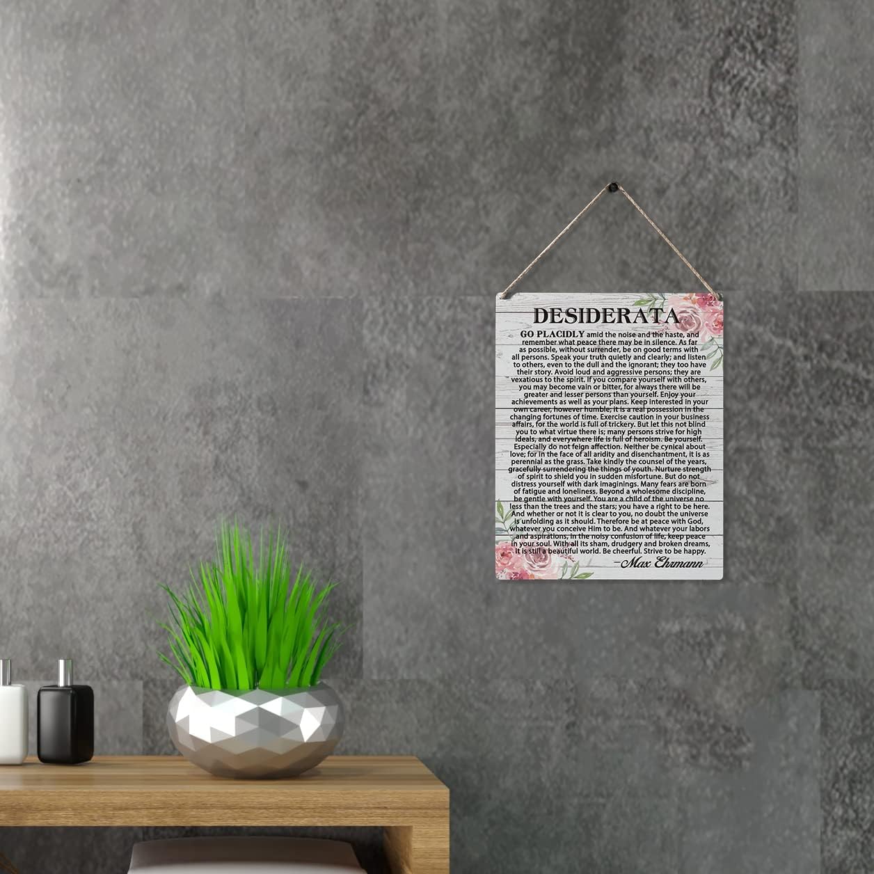 Qious Inspirational Signs Gift Farmhouse Desiderata Go Placidly Amid the Noise and the Haste Wooden Hanging Sign Rustic Wall Art Home Living Room Decoration 10 x 8 Inches