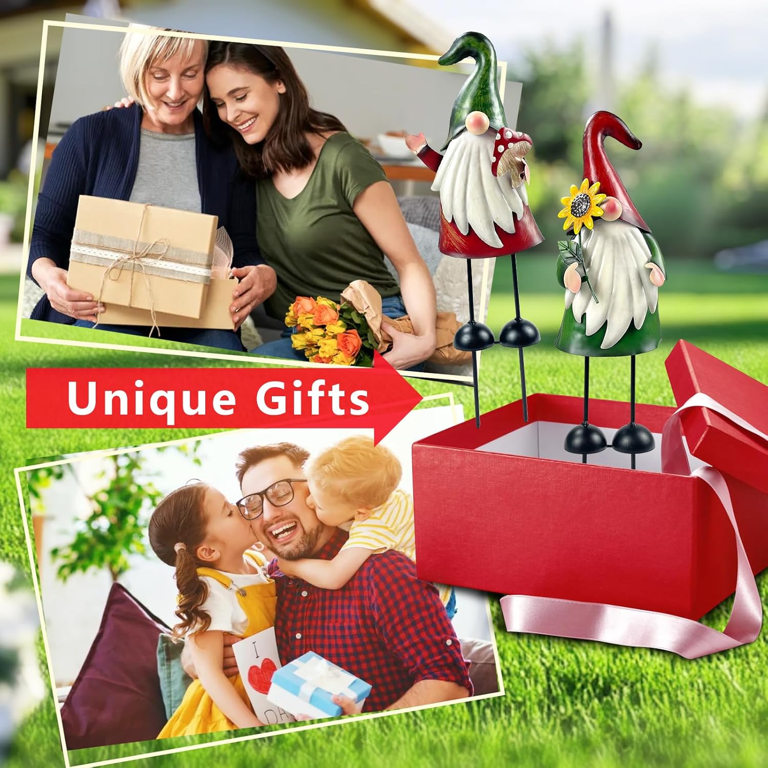 - 【Metal Gnome Sculpture】The metal gnome garden stake decor is made of high-quality iron, rust-proof with eco-friendly paint, suitable for indoors and outdoors.3D design makes it look more realistic and vivid, add the festival atmosphere during Christmas holiday. They can be placed not only on the lawn, but also in the yard or flower bed, bring a different kind of fun to your yard