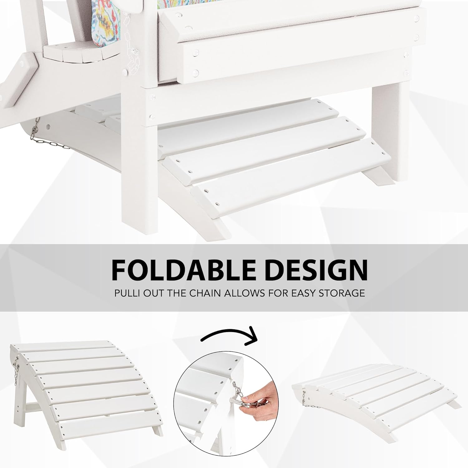 - 【LOW MAINTENANCE】: The stylish and simple adirondack ottomans are delicate, and could be used in a variety of outdoor venues. This ottoman requires little maintenance and suitable for cleaning with a soft cloth, soft brush and mild soapy water.