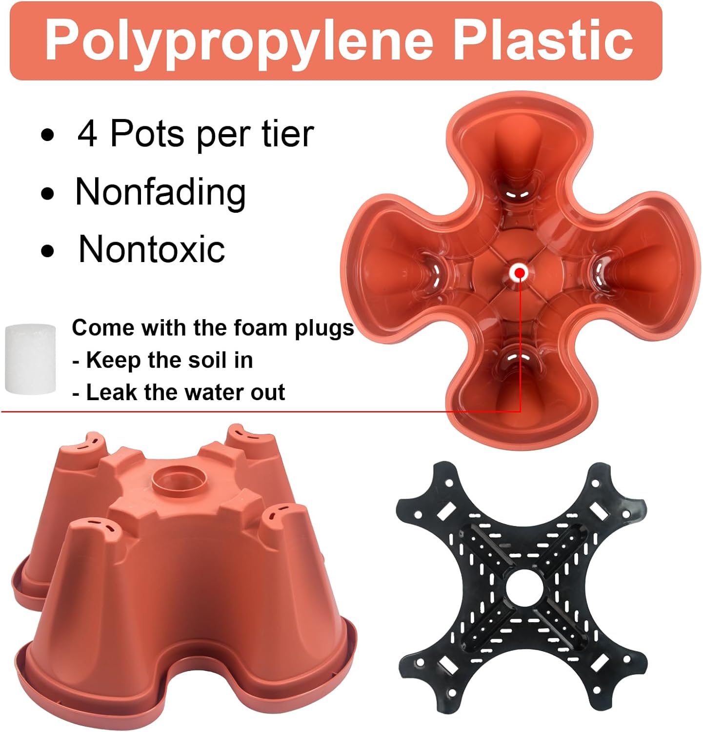 DUNCHATY Stackable Planters 6 Tier Vertical Garden Planting Tower Planters Strawberry, Herb, Flower, and Vegetable Planter Indoor Outdoor Gardening Pots with Removable Wheels and Tools