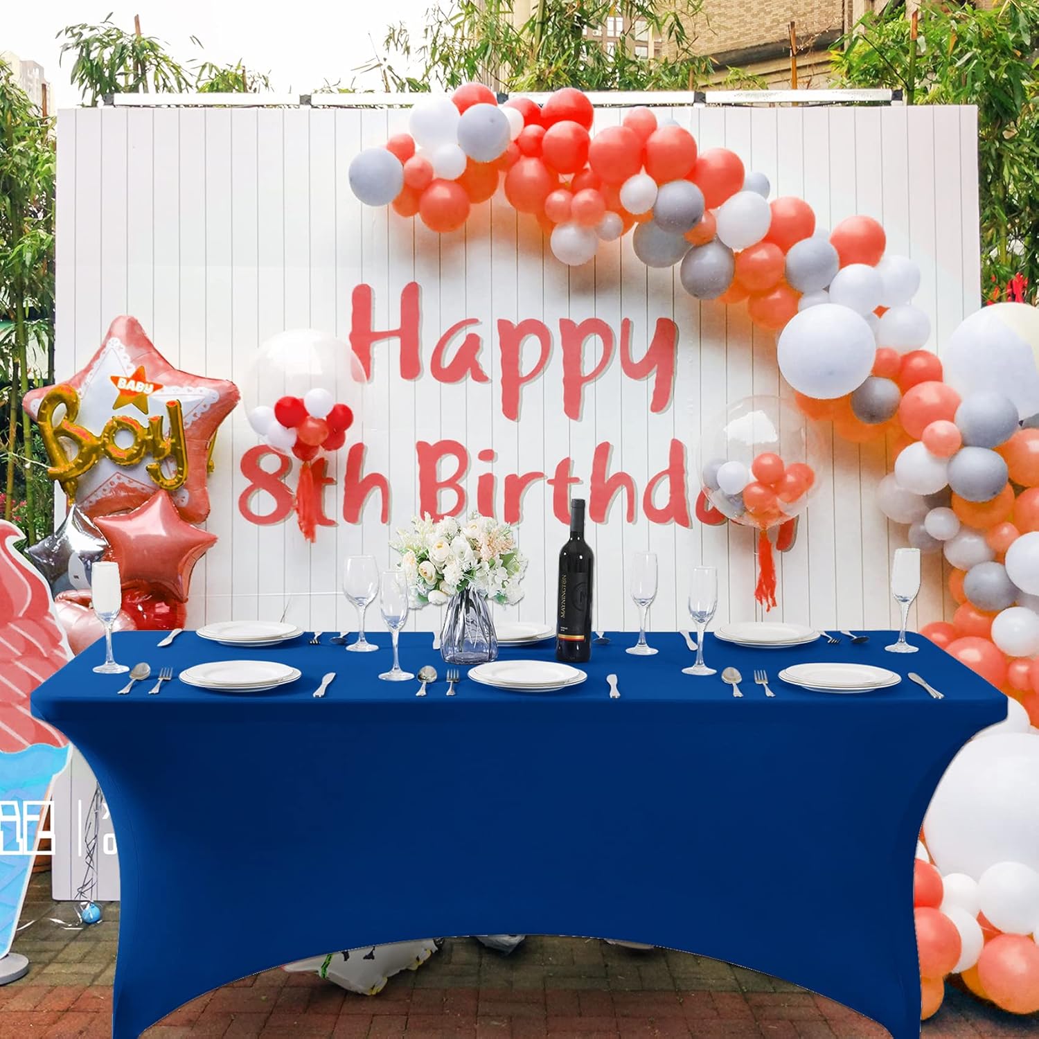 - Size & Design:This stretch table cloth is suitable for standard 4FT tables (48" Length x 30" Width x 30" Height). The four-way stretch spandex material and the elastic pocket design of 4 legs can better fit the table.