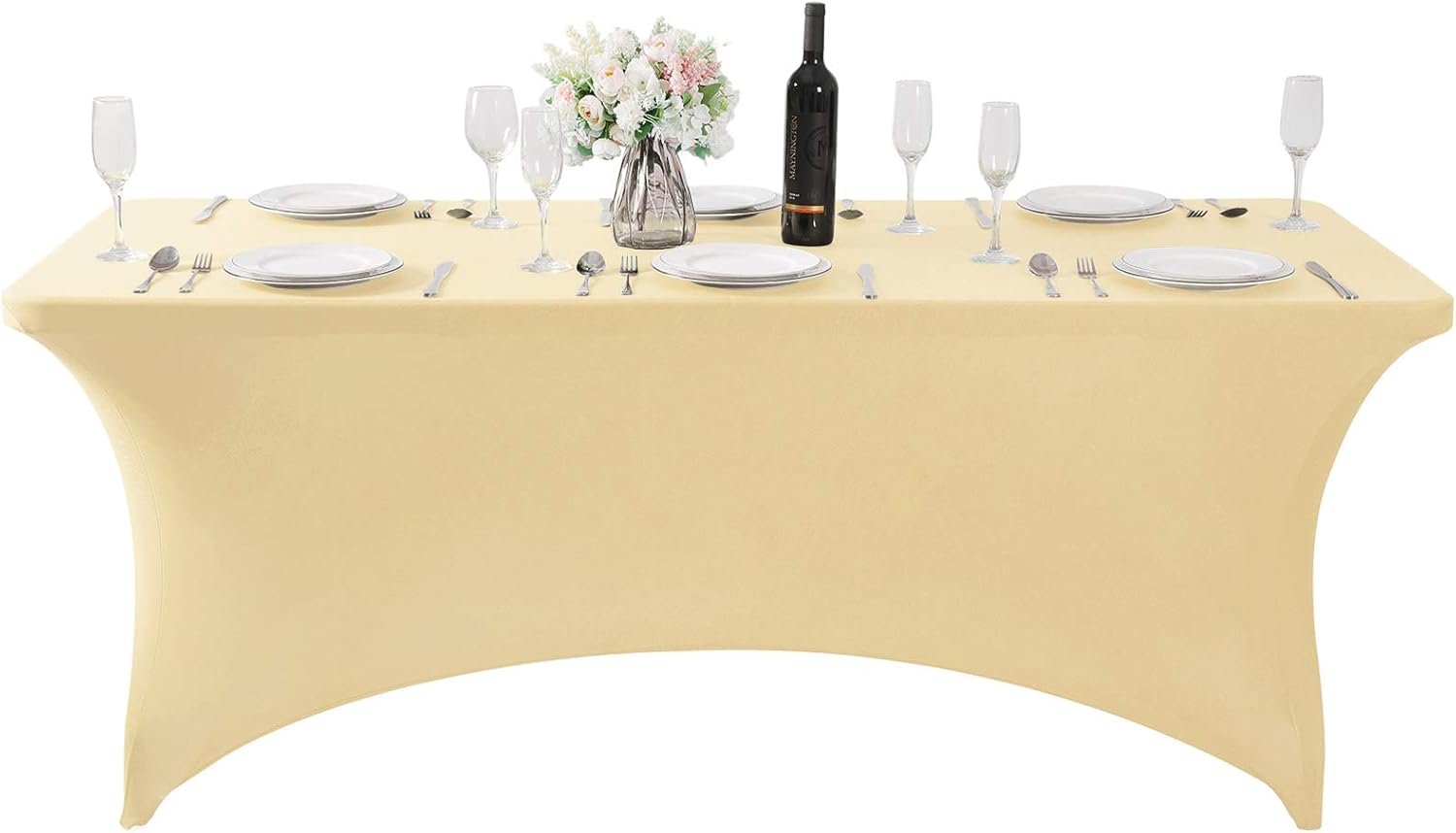 SuperO 2Pack Waterproof Spandex Table Cover for 6FT Table Universal Fitted Stretch Tablecloth for Party, Banquet, Wedding and Events-Champagne