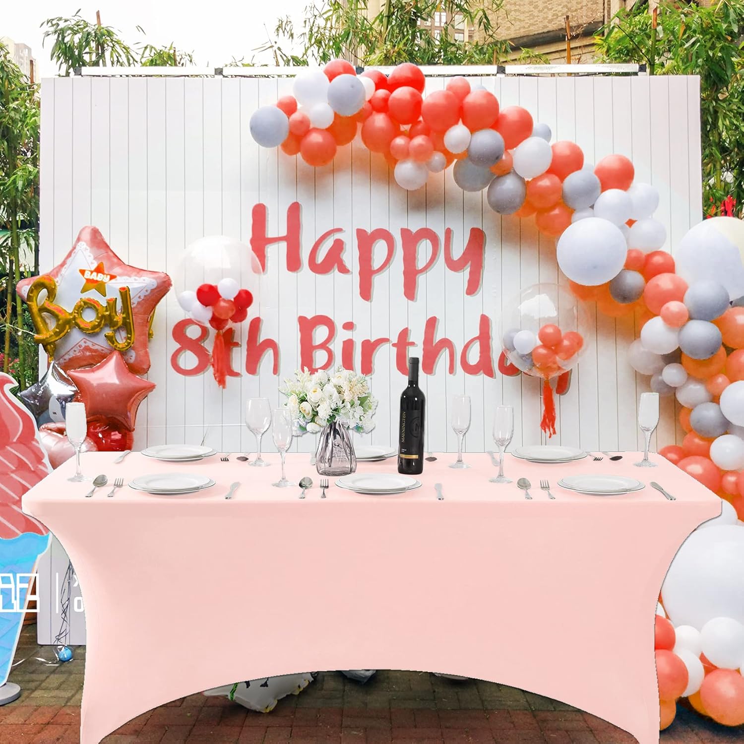 SuperO 2Pack Waterproof Spandex Table Cover for 8FT Table Universal Fitted Stretch Tablecloth for Party, Banquet, Wedding and Events-Blush Pink