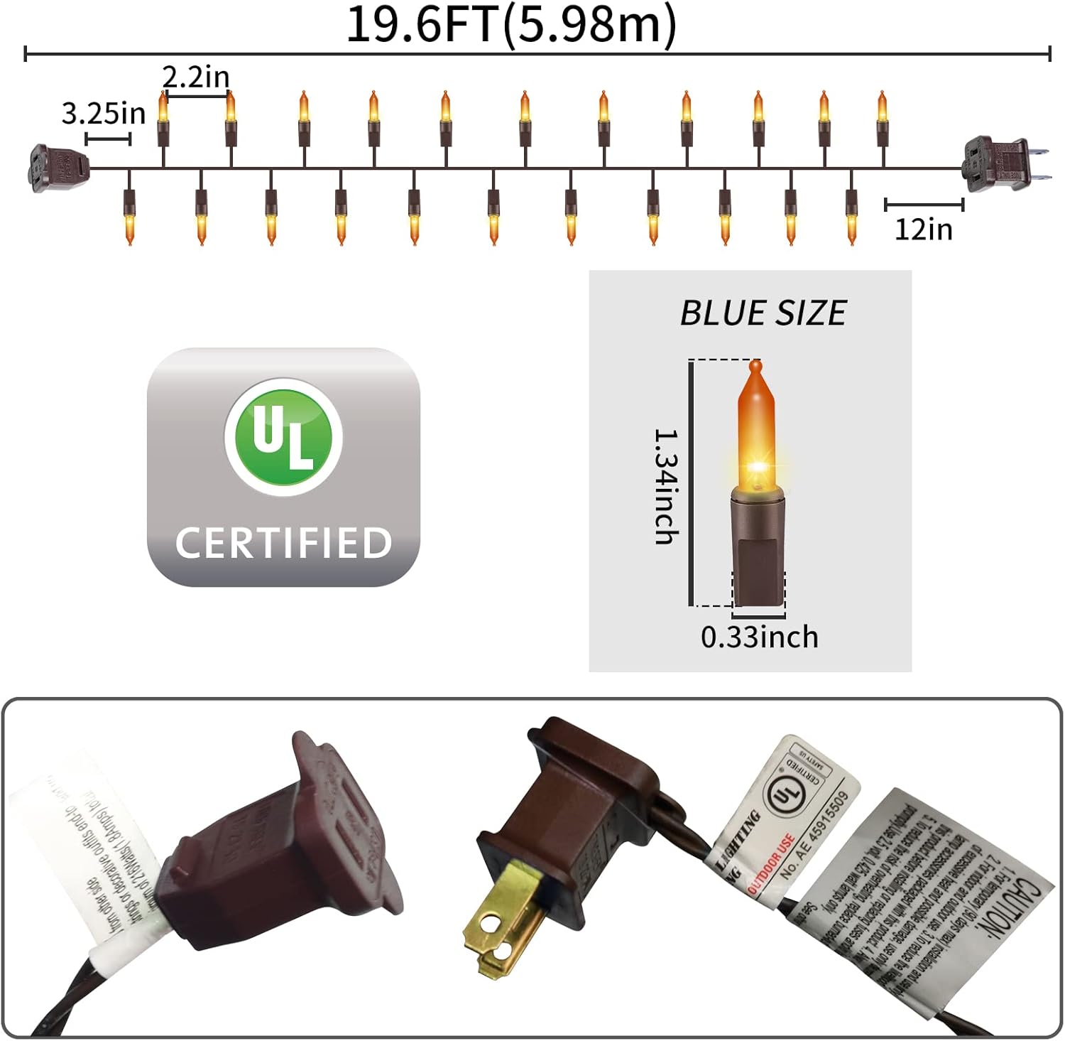 - 🎃Built-in fuses are UL listed for safe use. Complimentary 3 spare bulbs and 2 fuses.