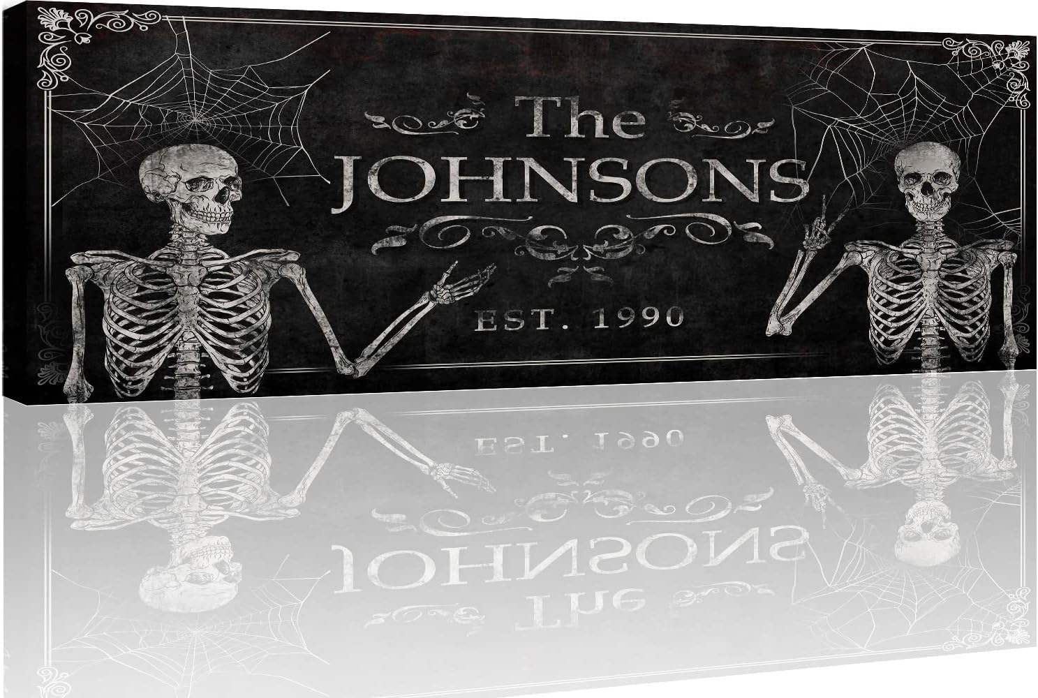 Tailored Canvases Gothic Family Wall Decor - Personalized Grunge Vintage Skeleton Room Decor for Home, Halloween Lovers, Men & Women for Bedroom, Living Room - Custom Couple Name, White Print, 48"x16"