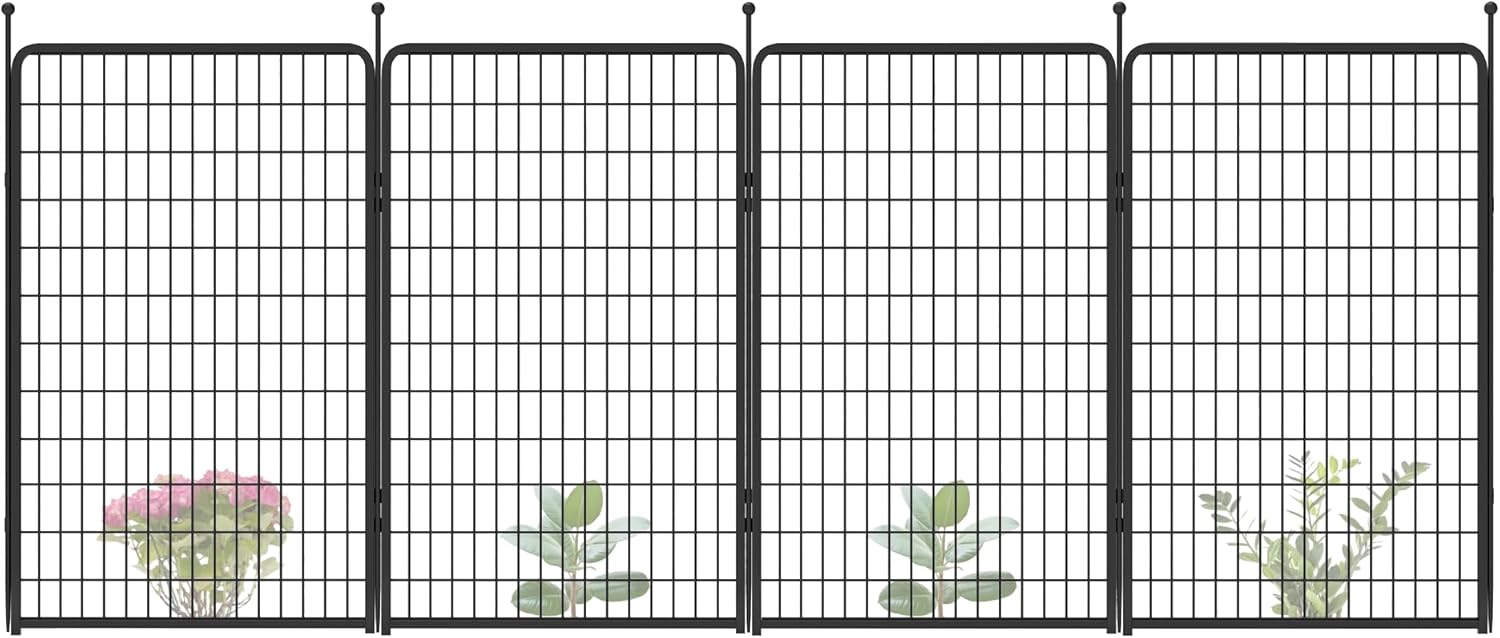 FXW Garden Fence Outdoor for The Yard – 50in(H) x 10.0ft(L) Heavy Duty Metal Animal Barrier for Dog and Rabbit, Decorative Dog Fence, 4 Panels, Black