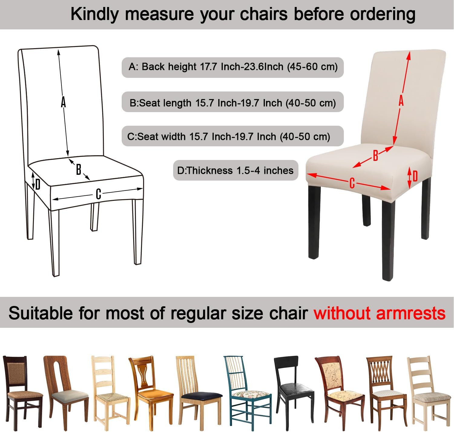 - 【Suitable for Chair Size】- Chair back height 17.7 Inch-23.6Inch (45-60 cm), Chair seat length and width 15.7 Inch-19.7 Inch (40-50 cm). Please check the measurement guide in the item picture before order.