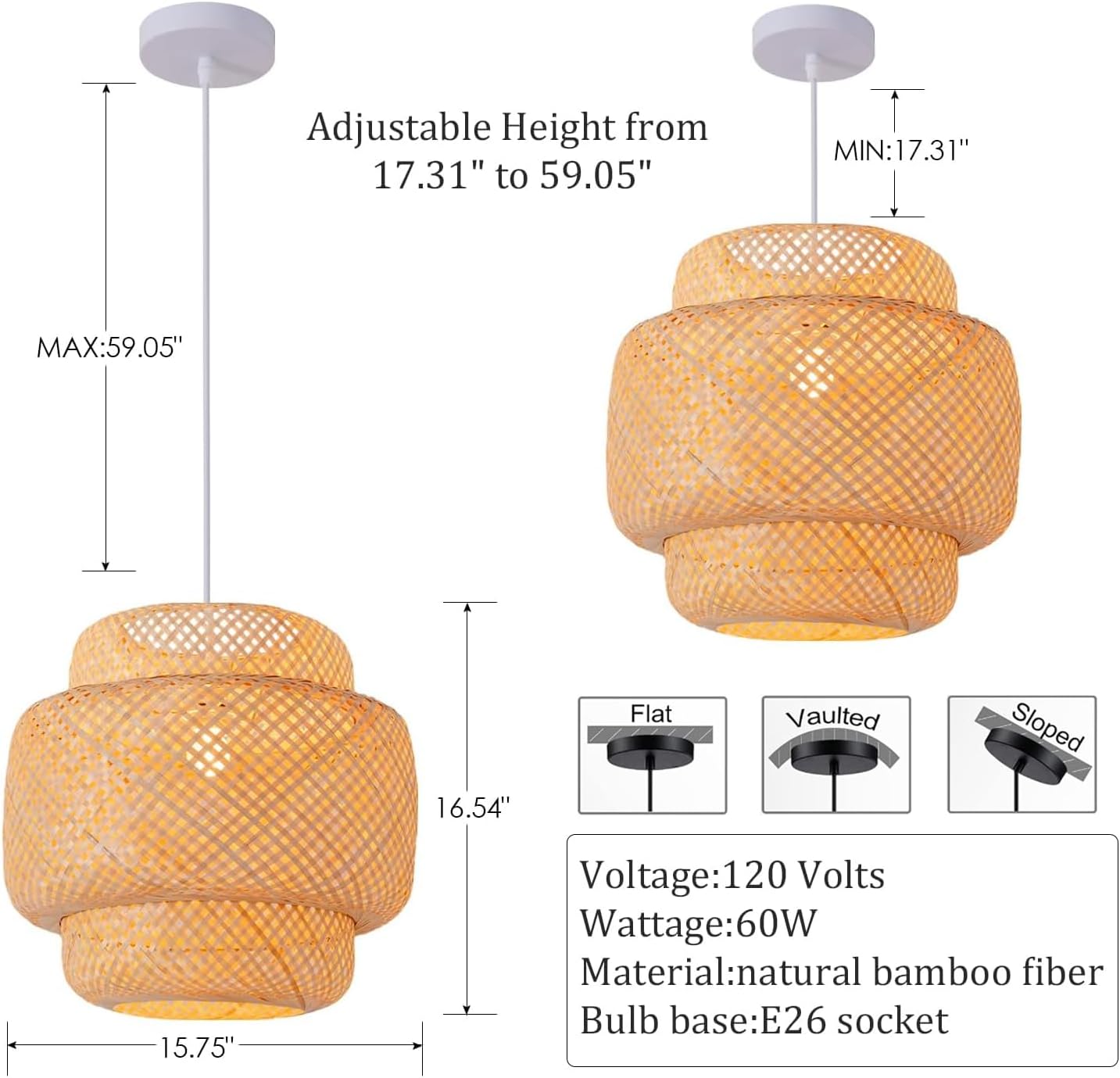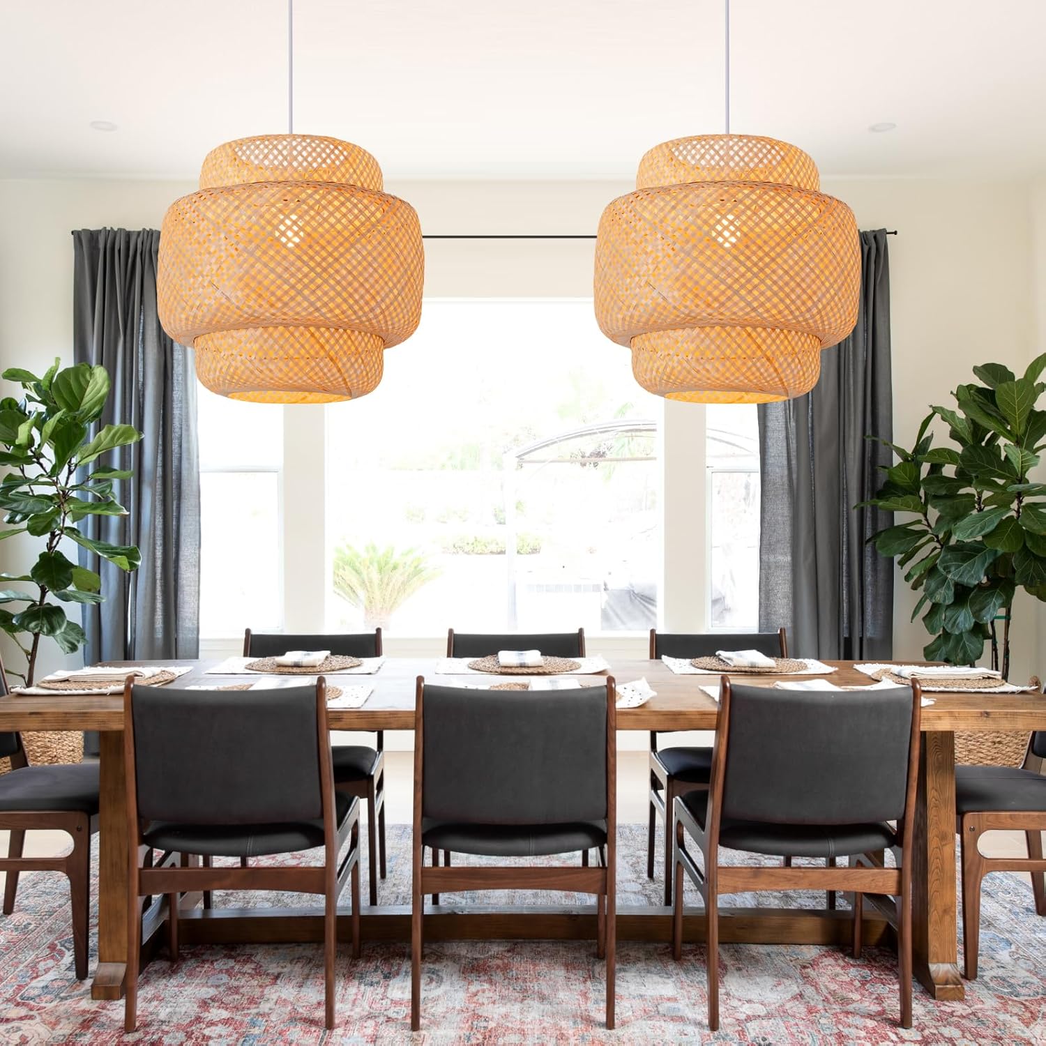 - 【Excellent Design】Bamboo rattan, the pendants are made of natural materials. The lights are hand woven with natural bamboo by superb skills bamboo artists. Decorated with classic tropical style elements, creates a wonderfully new look