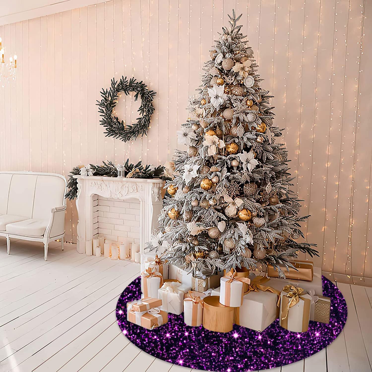 - âď¸ăSize Detail -Sequin Tree SkirtăYou will receive a 46 inches diameter purple glitter sequins tree skirt, fits under 8 foot tall trees. You can put some gifts, Christmas boxes, christmas ball on the xmas tree cover mat. The sparkle velour Christmas tree skirts is perfect for decorating your home and become part of your holiday tradition.