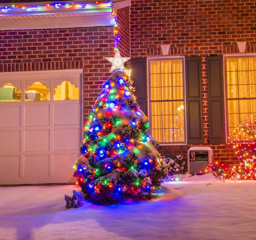 - Christmas Tree Topper: Crown your Christmas tree with this impressive star tree topper with 10 Clear lights. The light up star treetop on the top of the Christmas tree adds brilliance and shine to this Christmas festival.