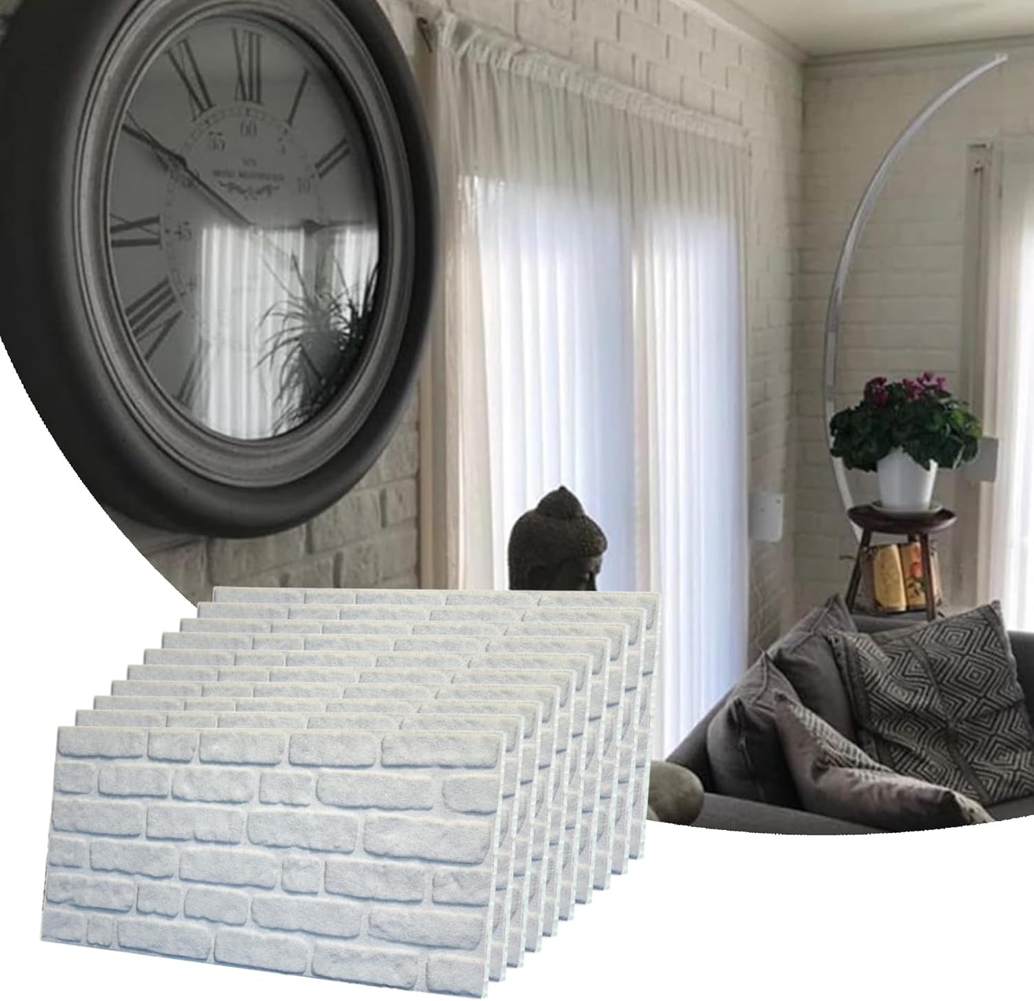 Dundee Deco 3D Wall Panels Faux Brick - Cladding, White Stone Look Wall Paneling, Styrofoam Facing for Living Room, Kitchen, Bathroom, Balcony, Bedroom, Set of 10, Covers 53 sq ft