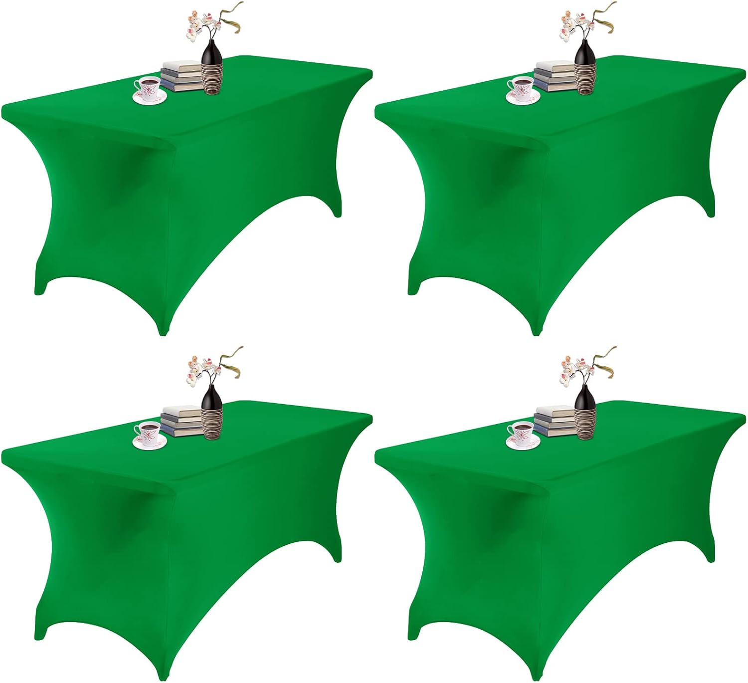 4Pack Spandex Waterproof Table Covers 6ft,Spandex 6ft Waterproof Table Cover for Party,Wedding, Banquet, and Events(Emerald)