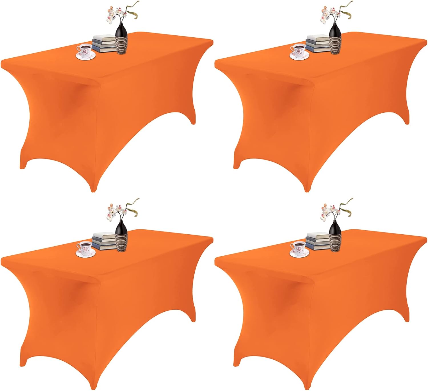 4Pack Spandex Waterproof Table Covers 6ft,Spandex 6ft Waterproof Table Cover for Party,Wedding, Banquet, and Events(Orange)