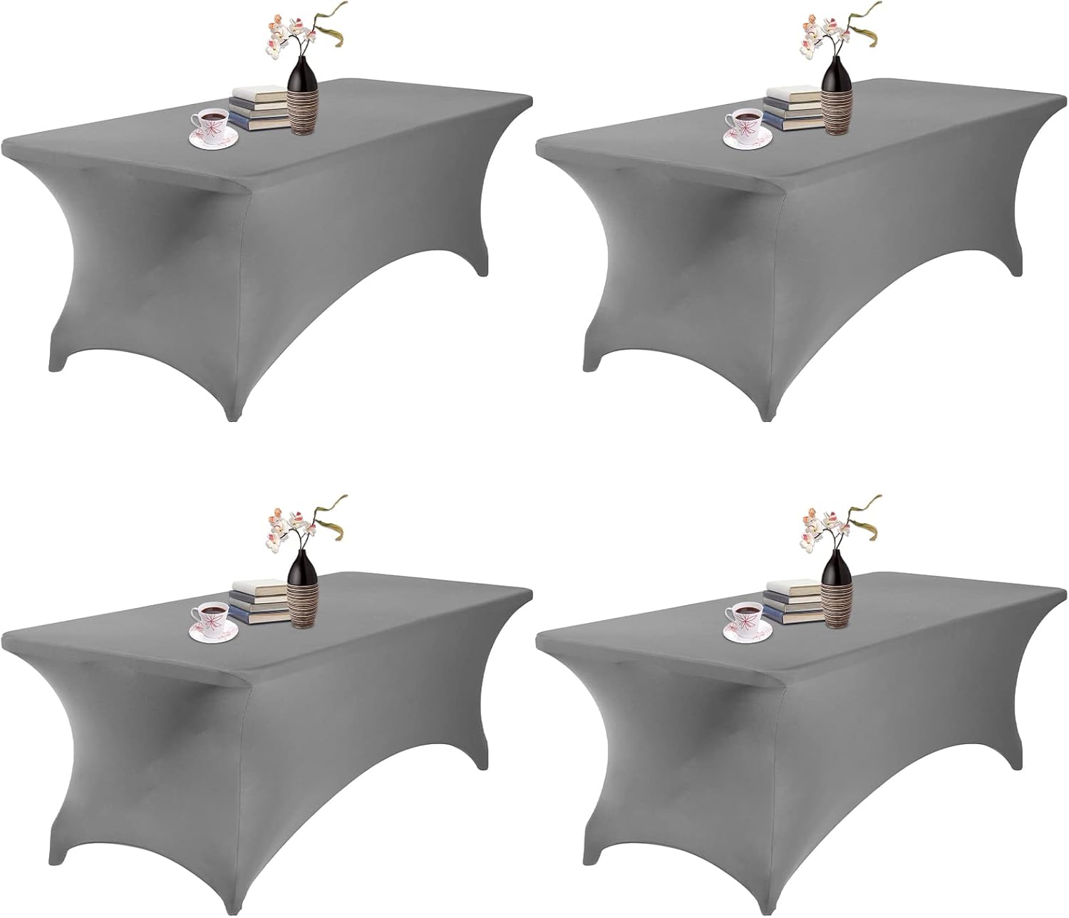 4Pack Spandex Waterproof Table Covers 8ft,Spandex 8ft Waterproof Table Cover for Party,Wedding, Banquet, and Events(Gary)