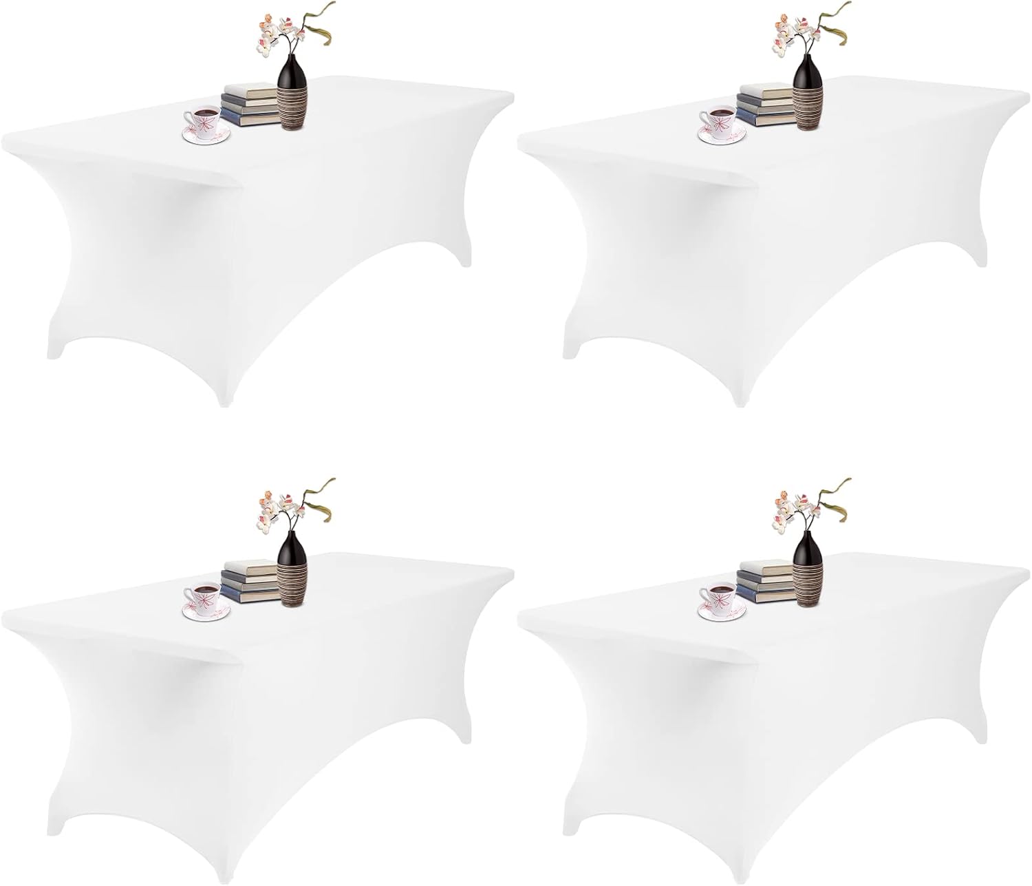 4Pack Spandex Waterproof Table Covers 8ft,Spandex 8ft Waterproof Table Cover for Party,Wedding, Banquet, and Events(White)
