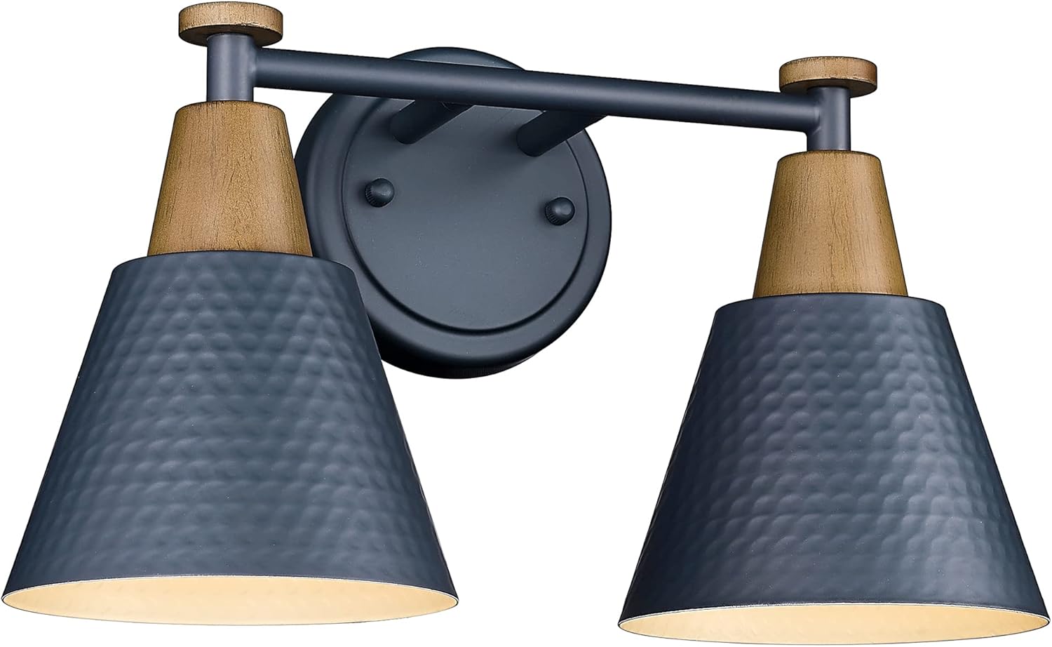 FEMILA 2-Light Bathroom Light Fixtures, Modern Bathroom Vanity Light with Hammered Metal Shade, Dark Blue Sconces Wall Lighting for Mirror Kitchen Bedroom, 4FG59B-2W Blue