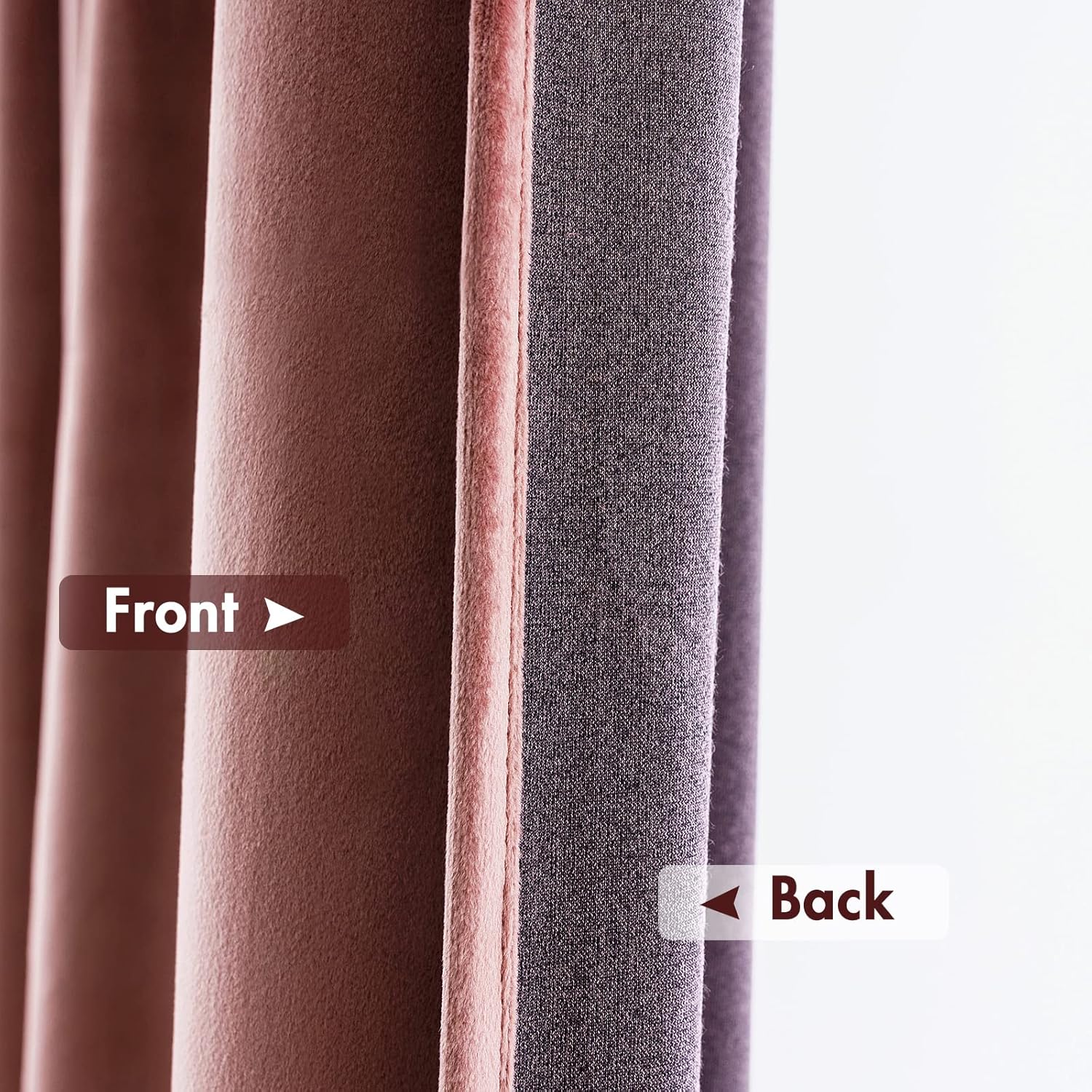 MIULEE Dusty Rose Pink Velvet Curtains Thermal Insulated Blackout Curtain Drapes for Bedroom Living Room Darkening 90 Inches Long Curtains Panels Rod Pocket Set of 2