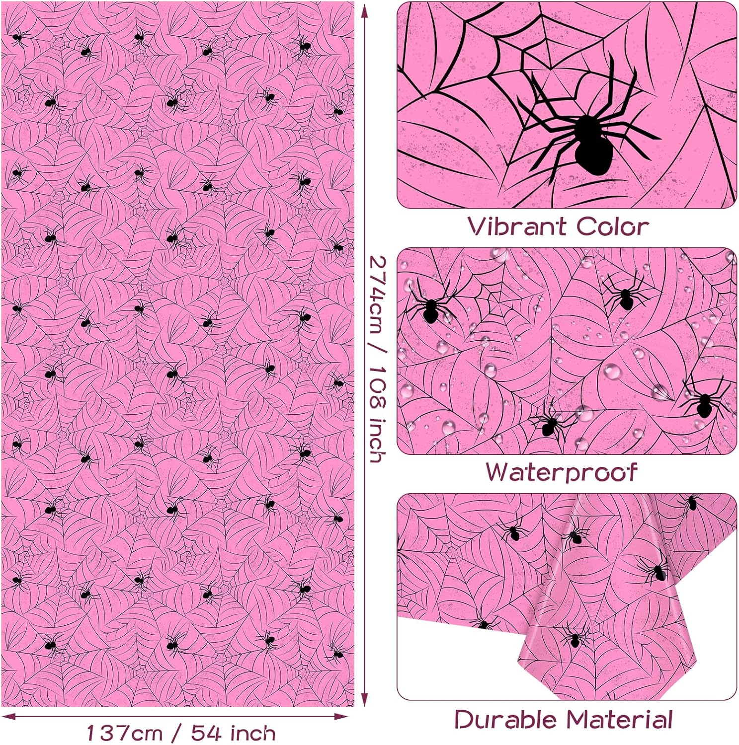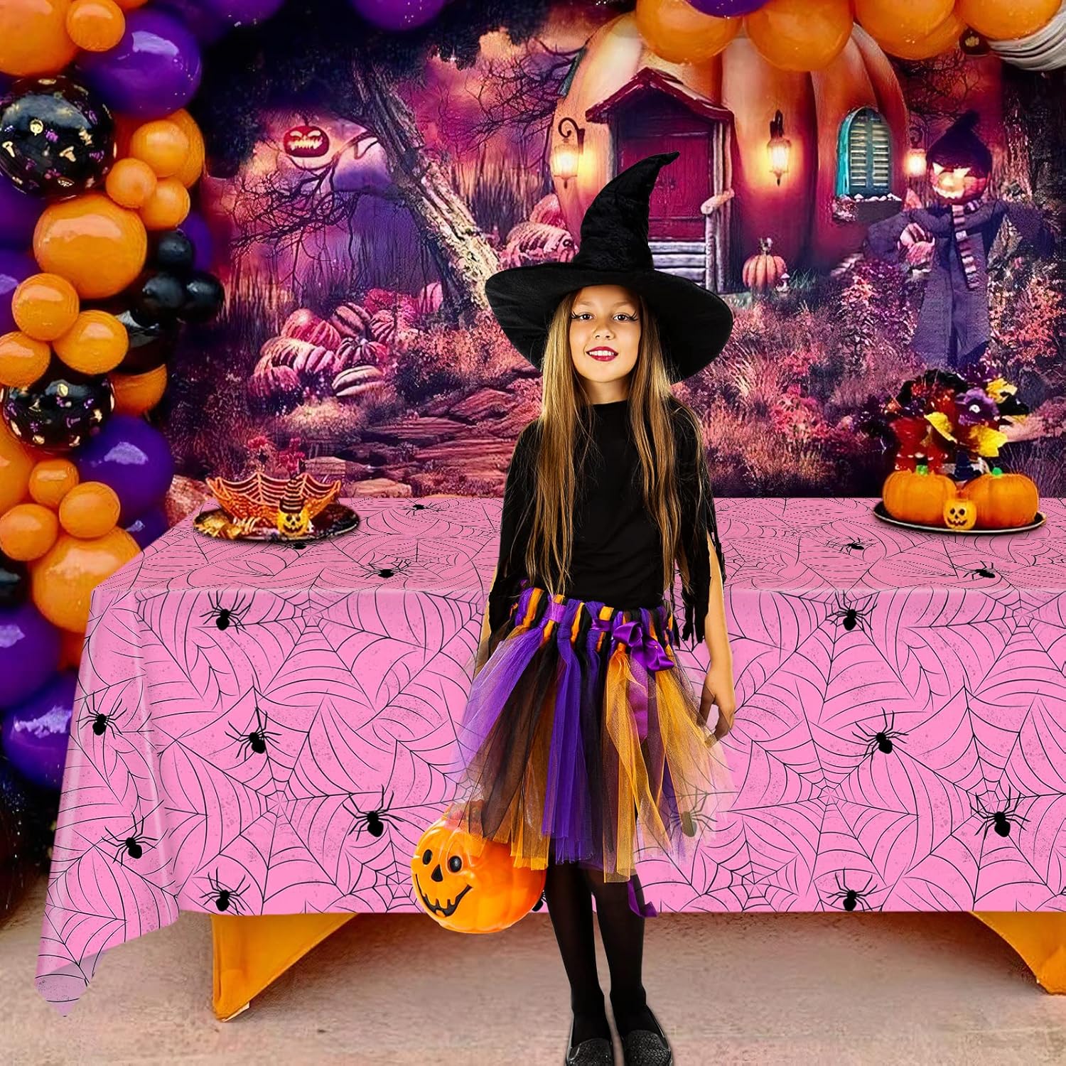 TREWAVE 3 Pack Halloween Spiderweb Tablecloth Rectangular Plastic Spider Web Table Cloth Large Size Table Covers for Home Decor Halloween Party Decorations 54" x 108" (Pink)
