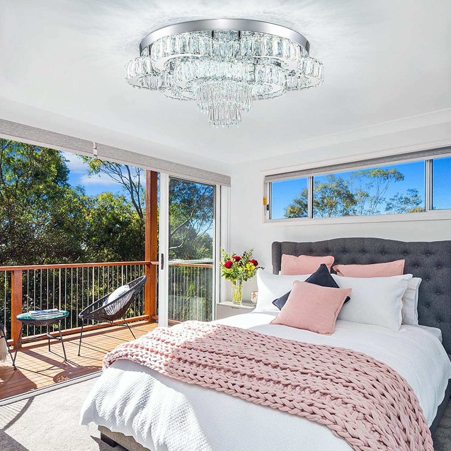 - -Wide Applications: it’s perfect to put this flush mount chandelier in large space or low ceiling such as your living room, dinning room, kitchen, bedroom, closet, foyer, porch, farmhouse, hallway, hall, study etc.