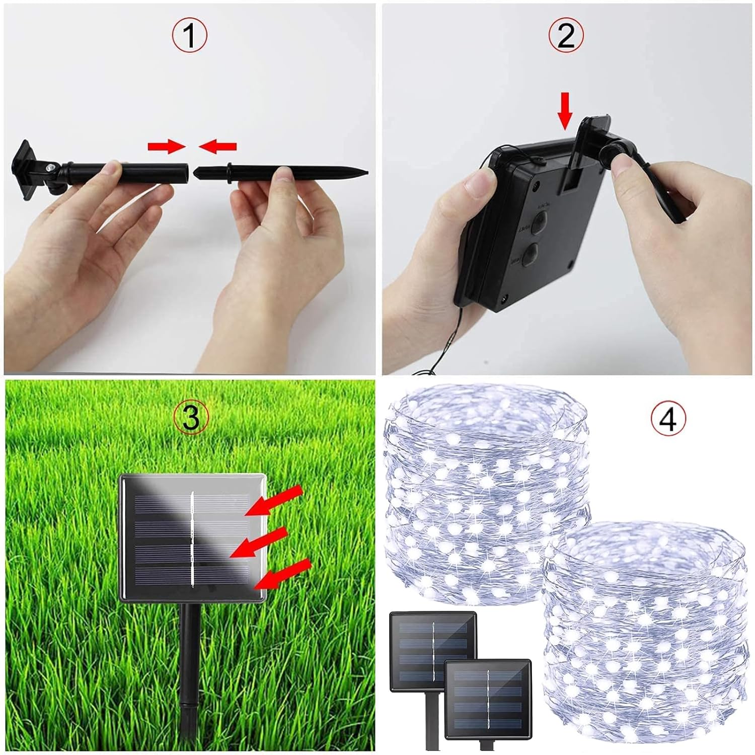- [Solar Powered & Auto On/Off]: This string lights for outside is solar powered and waterproof, no electricity cost. Larger Christmas solar panel with quick charging technology brings you higher solar energy conversion, it can work up to 10-12 hours after being fully charged (8 hours). Just place the battery panel in sunny area, it will automatically charge at daytime and light up at night.