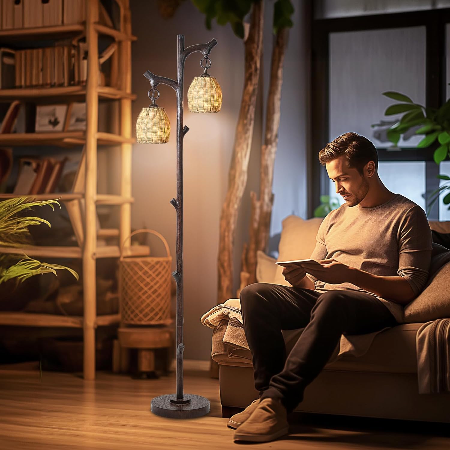 - Two wicker drum shade strip lamp body light sources are suspended from the classic and elegant tree-shaped main light stand, when you are relaxing on sofas, chaise long use and reading chairs, you will feel like you are in a natural tree Underneath, enjoy the serenity of nature, in addition to bright, high-intensity task lighting, it also provides warm light without taking up too much space, ideal for small rooms such as children's rooms, guest rooms, offices, etc.