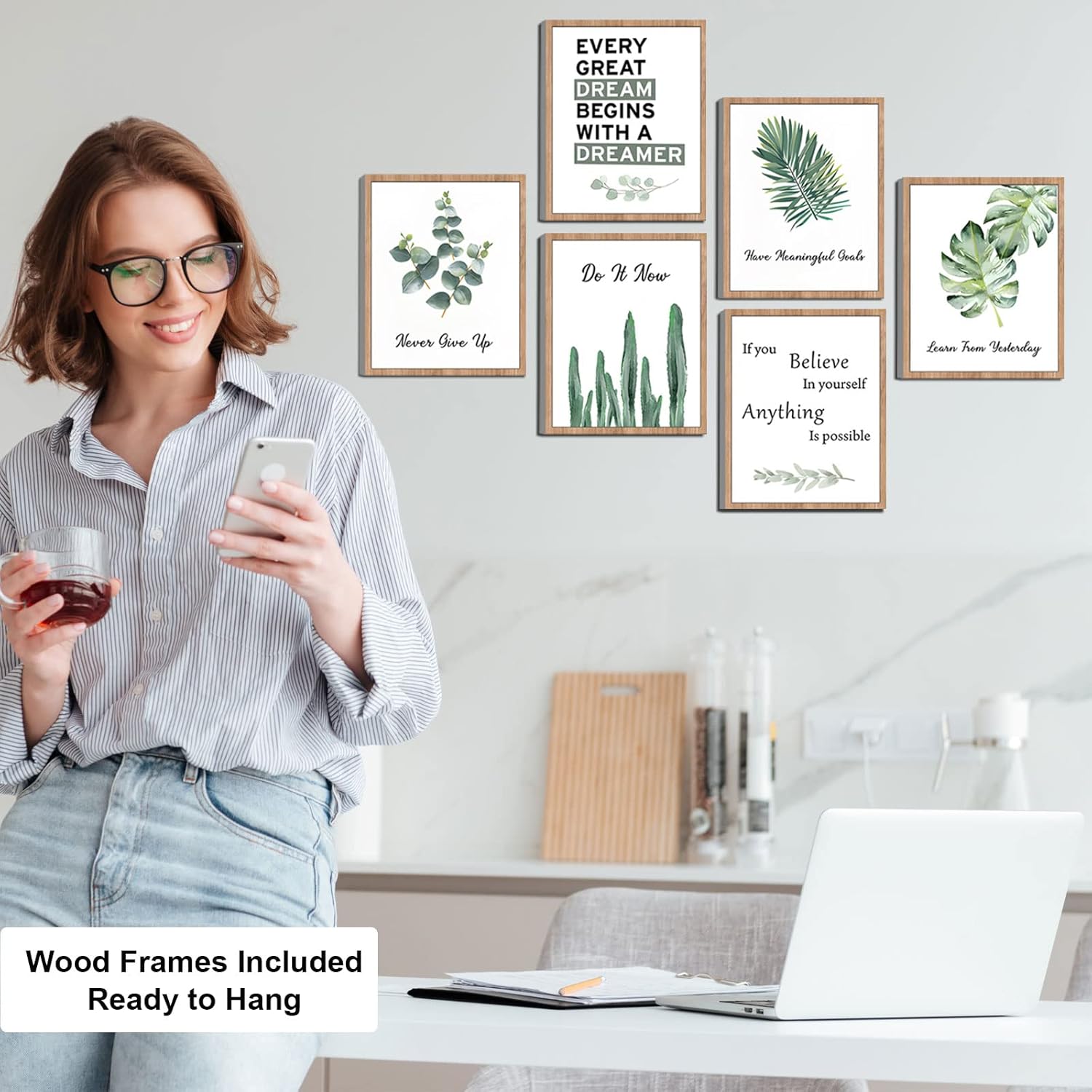FRAMED Inspirational Wall Decor, Positive Affirmations & Motivational Art for Office, Bedroom & Classroom (Set of 6, 8x10in, Framed)