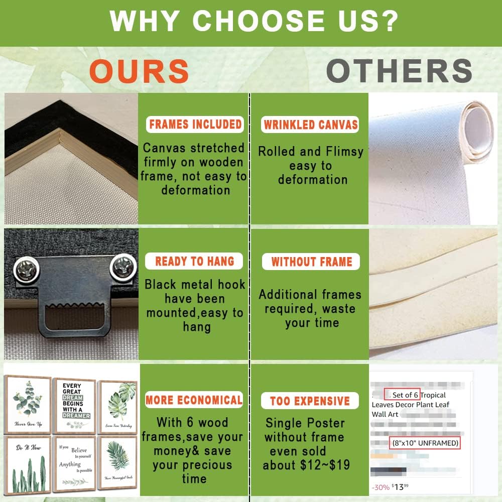 - Why Special?: Inspiration comes from the life, all of our inspiration wall art are designed by independent artist. This inspirational wall art for office conbined green botanical with positive quotes, which help grow positive mindset and boosts self-confidence allowing to reach highest potential for everyone. Bright tone gives your room an instant make-over, transform your wall into beautiful scenery and promotes your taste and texture of daily life.