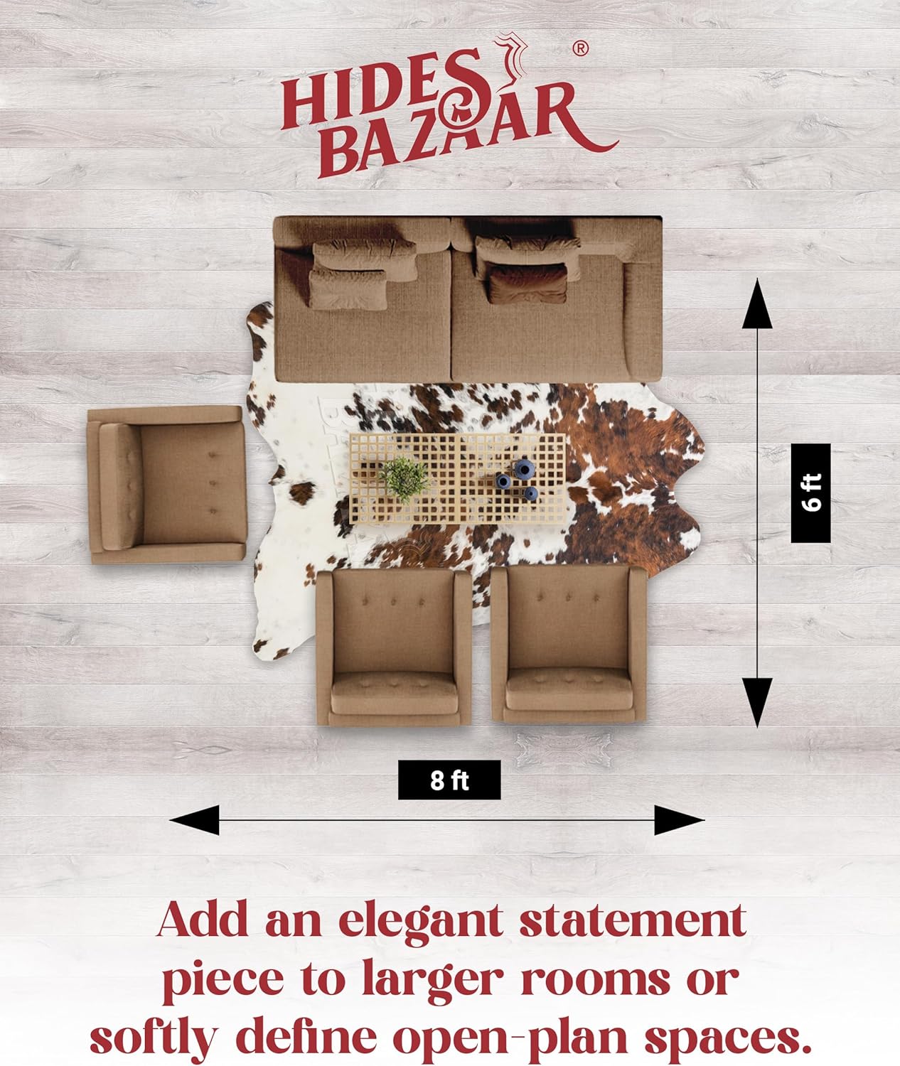 - Unique and One-of-a-Kind: Each cow rug showcases natural variations and imperfections that add to its charm. The distinct pattern of our tricolor cowhide rug is determined by the cow's genetics making each black brown white cowhide rug one of a kind.