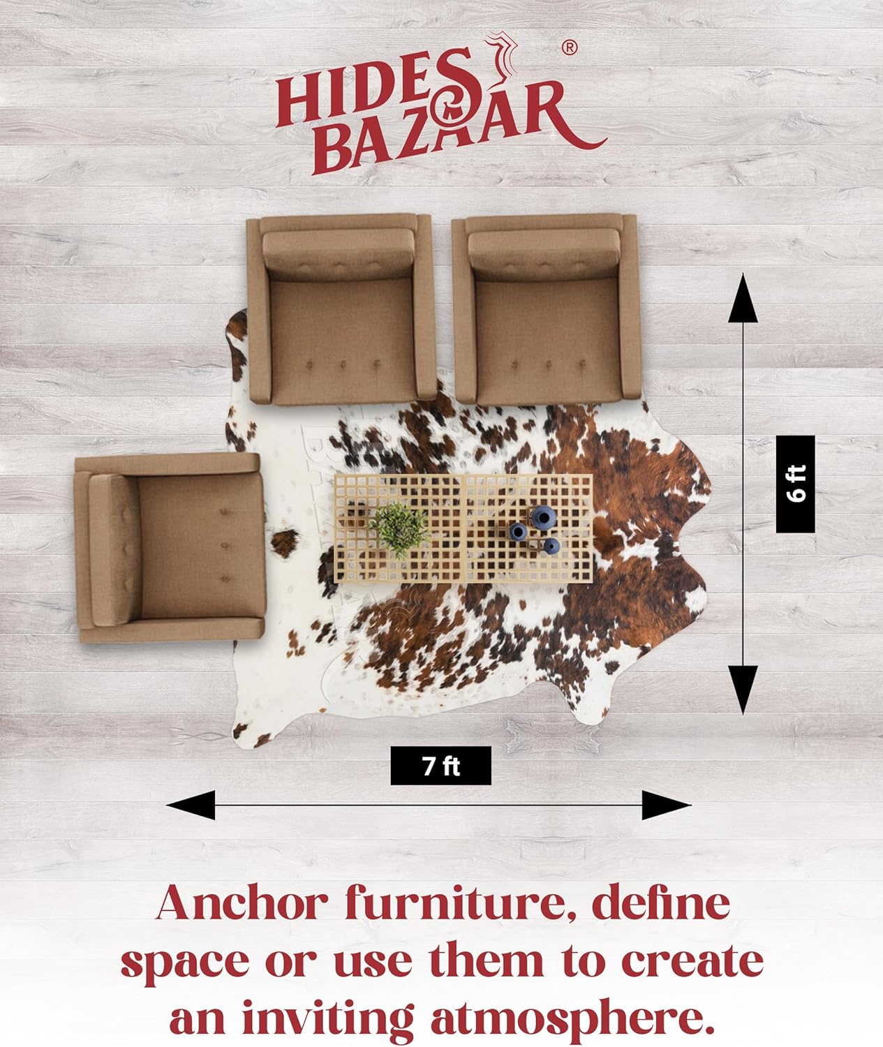 - Unique and One-of-a-Kind: Each cow rug showcases natural variations and imperfections that add to its charm. The distinct pattern of our tricolor cowhide rug is determined by the cow's genetics making each black brown white cowhide rug one of a kind.