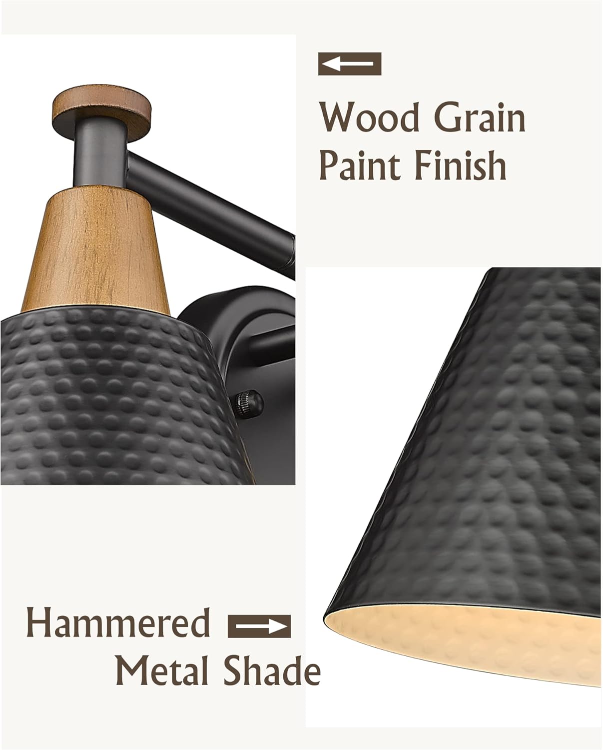 - 【Well Made】This black bathroom vanity lights are handcrafted with hammered metal shade, simple but appealing to the eye, complementing any indoor decor.