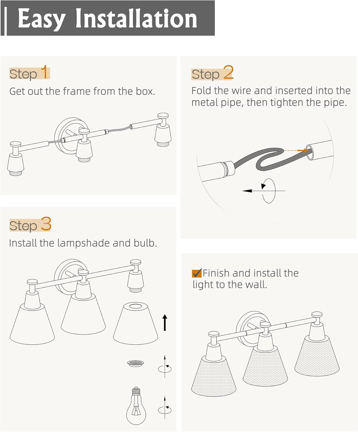 - 【Bulb Requirements】Support any E26 base bulbs ( Max 60W/each, bulbs are not included). This wall lamp is also designed to be dimmable when used with a dimmable bulb and compatible dimmer switch.