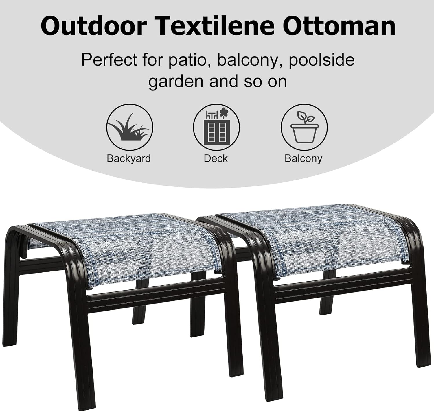 Outdoor Foot Stools Gift for Patio Ottoman Footrest Aluminum Portable Seat Wicker Furniture Stackable Dining Ottoman 2 Pack Blue