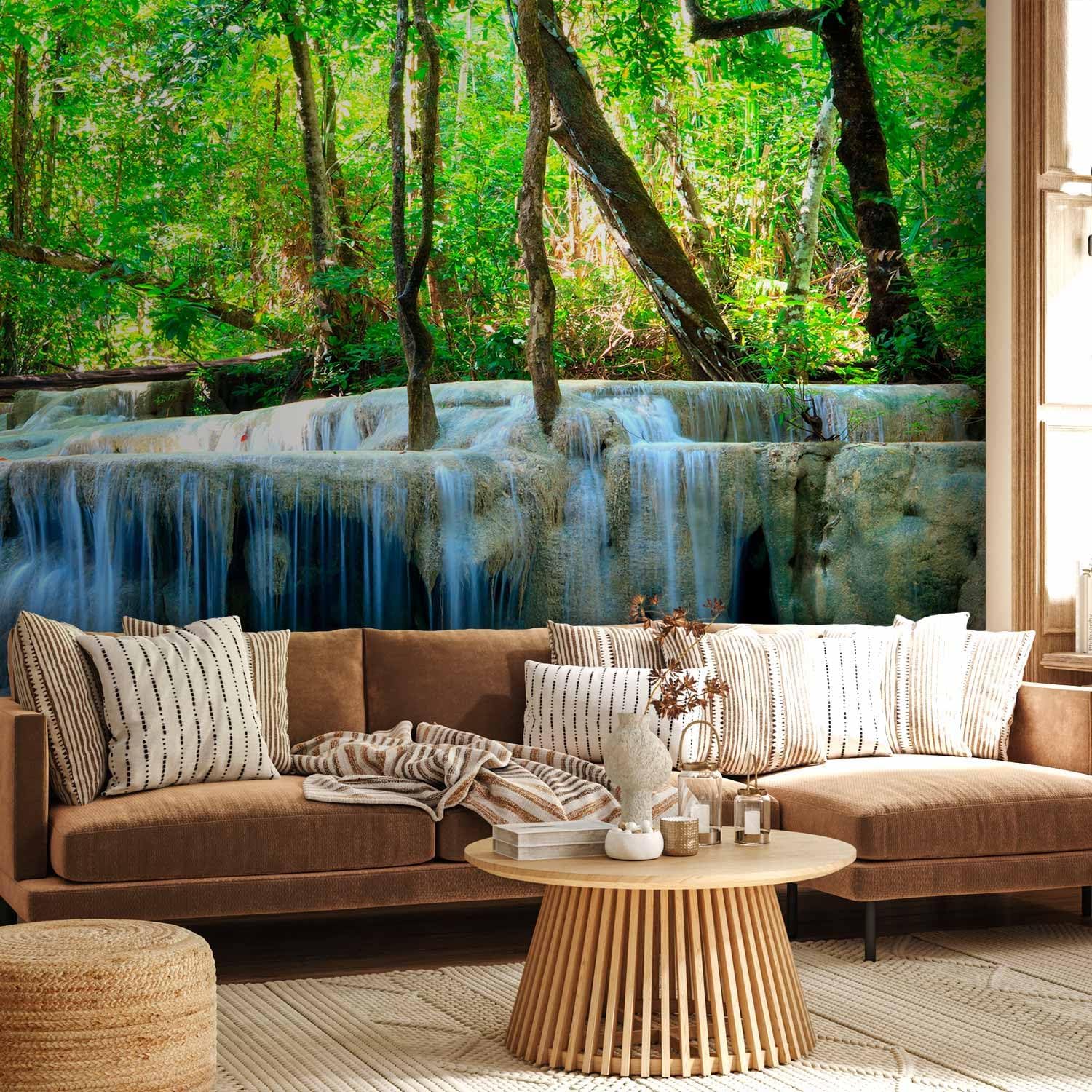 artgeist Wall Mural Waterfall Landscape 216x98 in - XXL Non-Woven Corner Wallpaper Fleece Angle Wall Decor Photo Print Picture Image Design Modern Nature Forest Tree Green c-B-10074-a-a