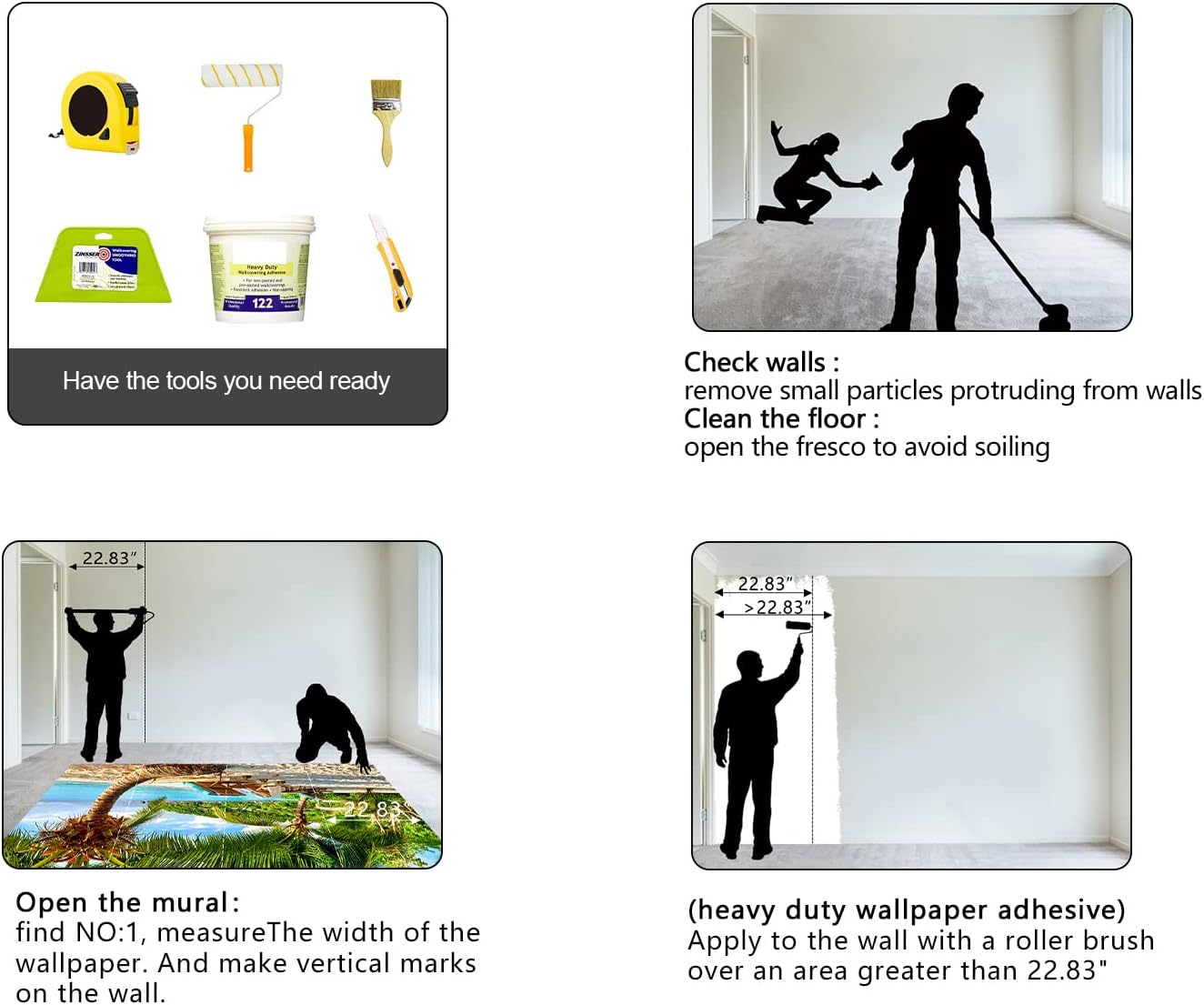 - It's easy to install: at the bottom of each mural we have a numbered sequence, You can refer to the instructions we provided and the main picture 6-7,just match the numbers and you'll be amazed!