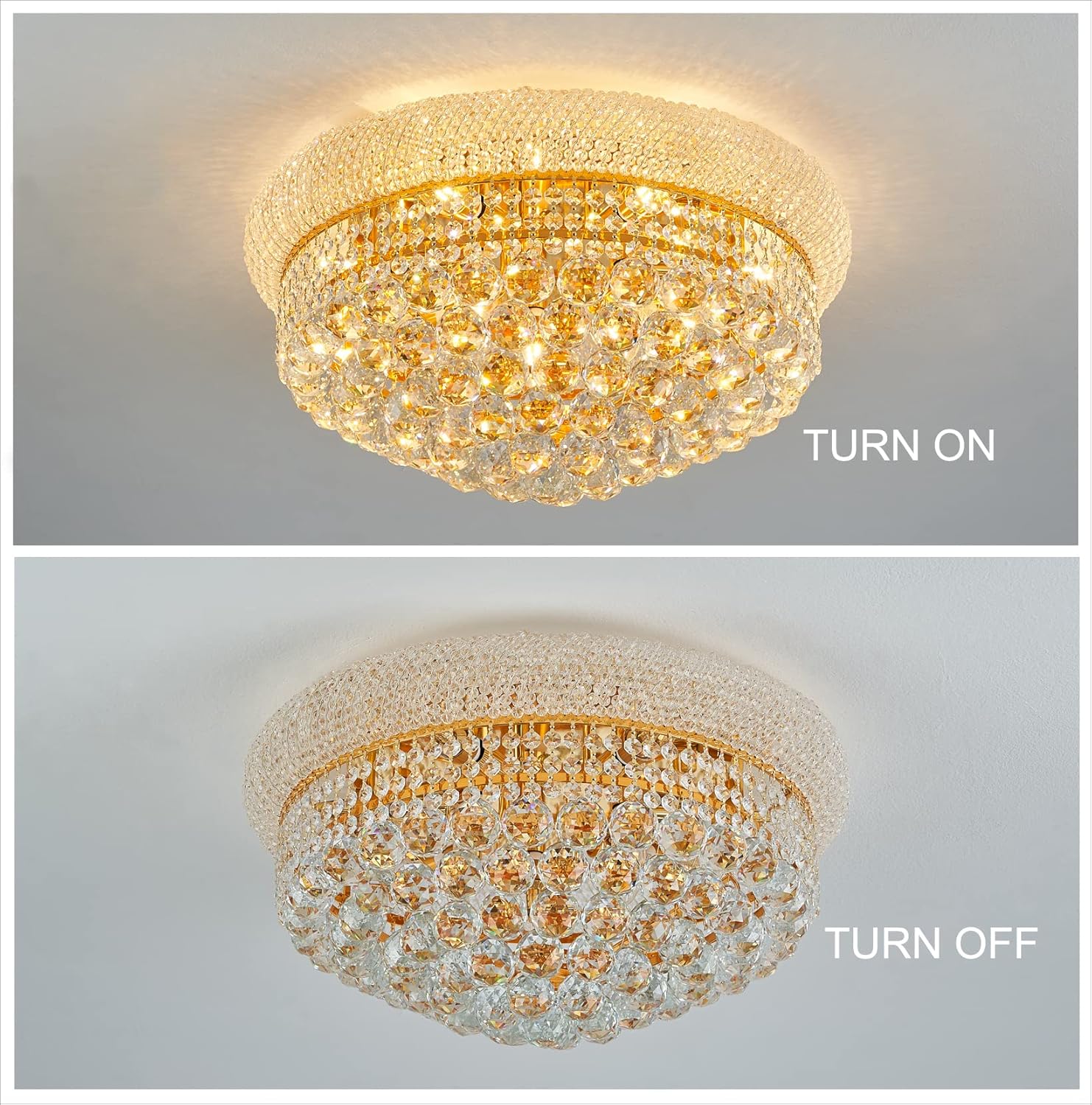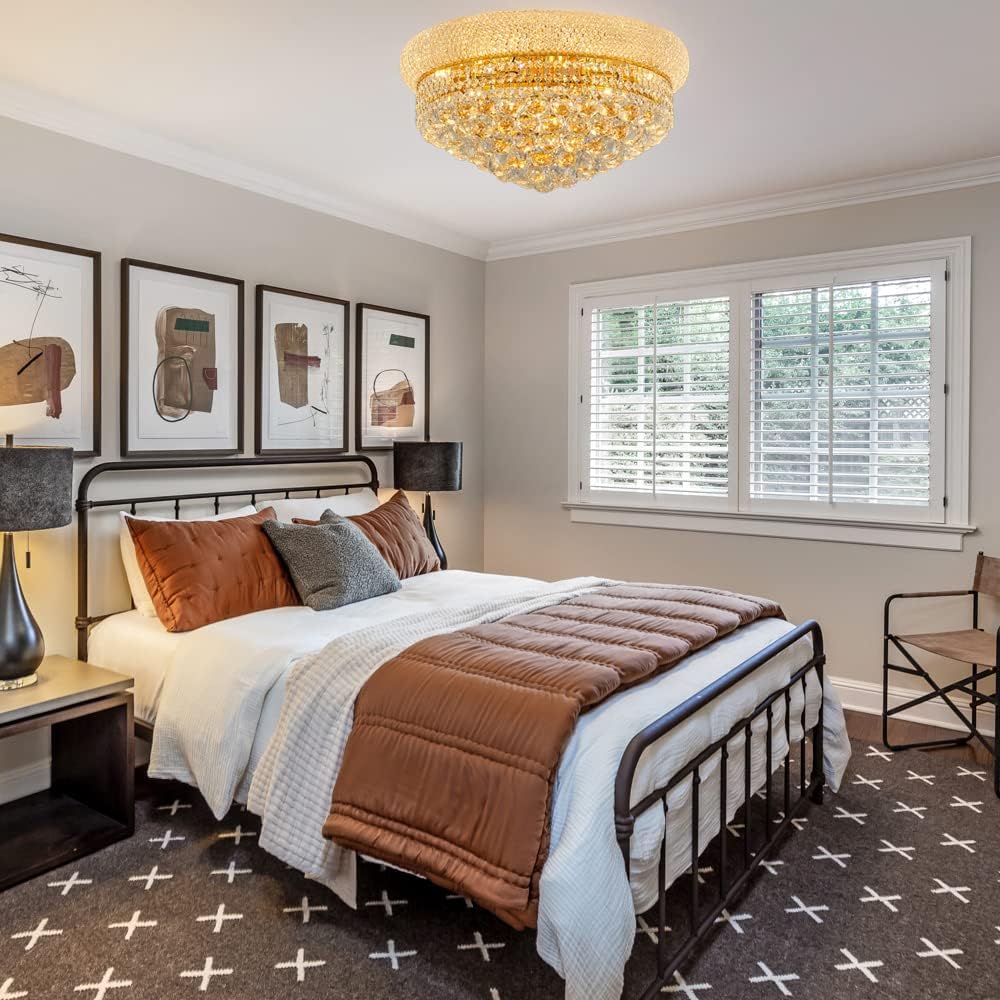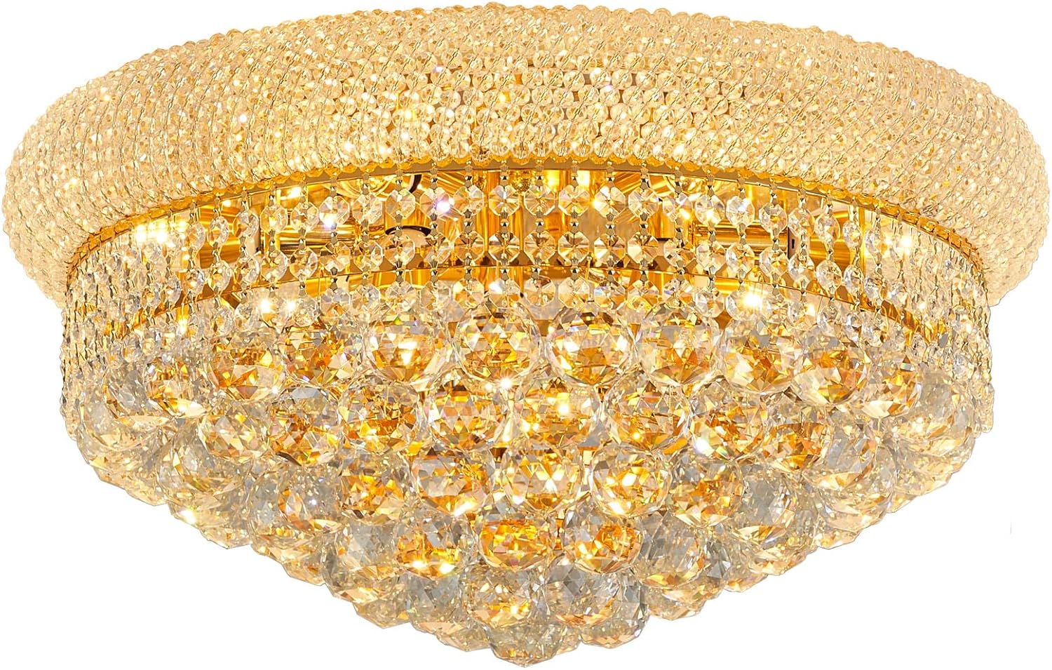 9-Light Crystal Flush Mount Chandelier Ceiling Light Fixture for Living Room Dining Room Bedroom Foyer Entryway Hallway Closet Bathroom (Gold D22)