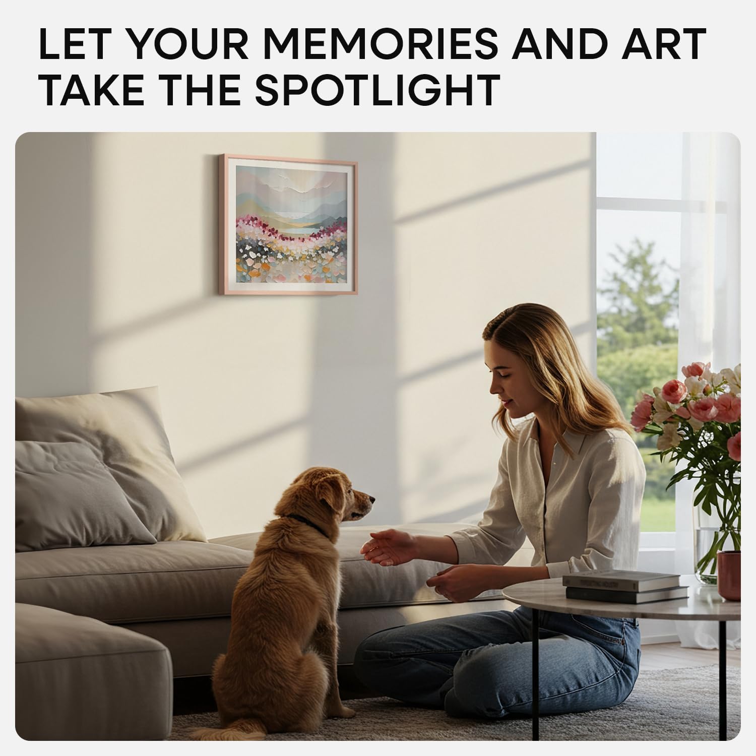 - ROSE GOLD. SOFT GLOW. This aluminum frame features a muted rose finish with a satin texture. It brings gentle contrast to light walls and softens modern interiors with a hint of warmth.