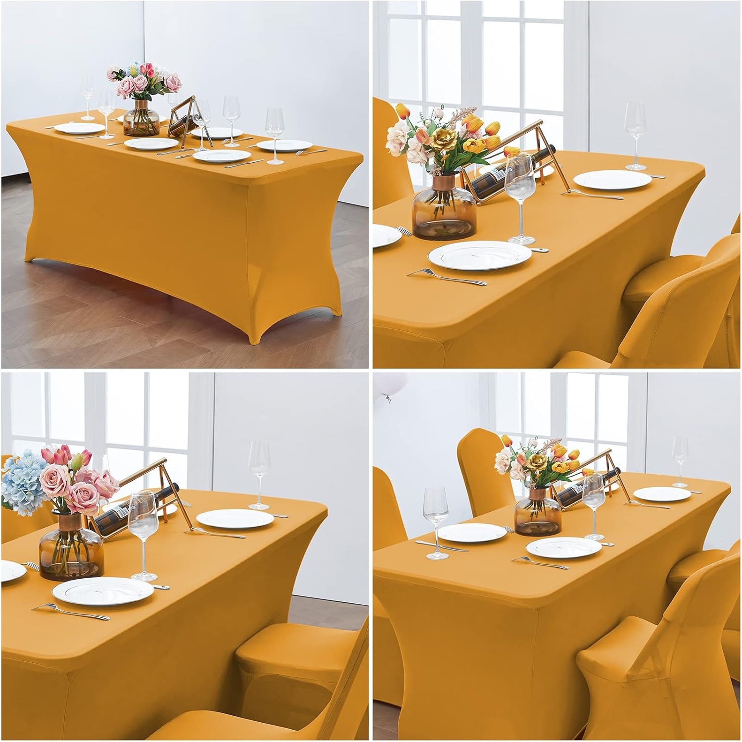 CWK 6FT Waterproof Stretch Spandex Table Cover for Rectangular Tables - Elastic Fitted Tablecloth for Folding Tables,Wrinkle Resistant Table Cloth for Parties, Weddings, Banquets & Events (Gold)