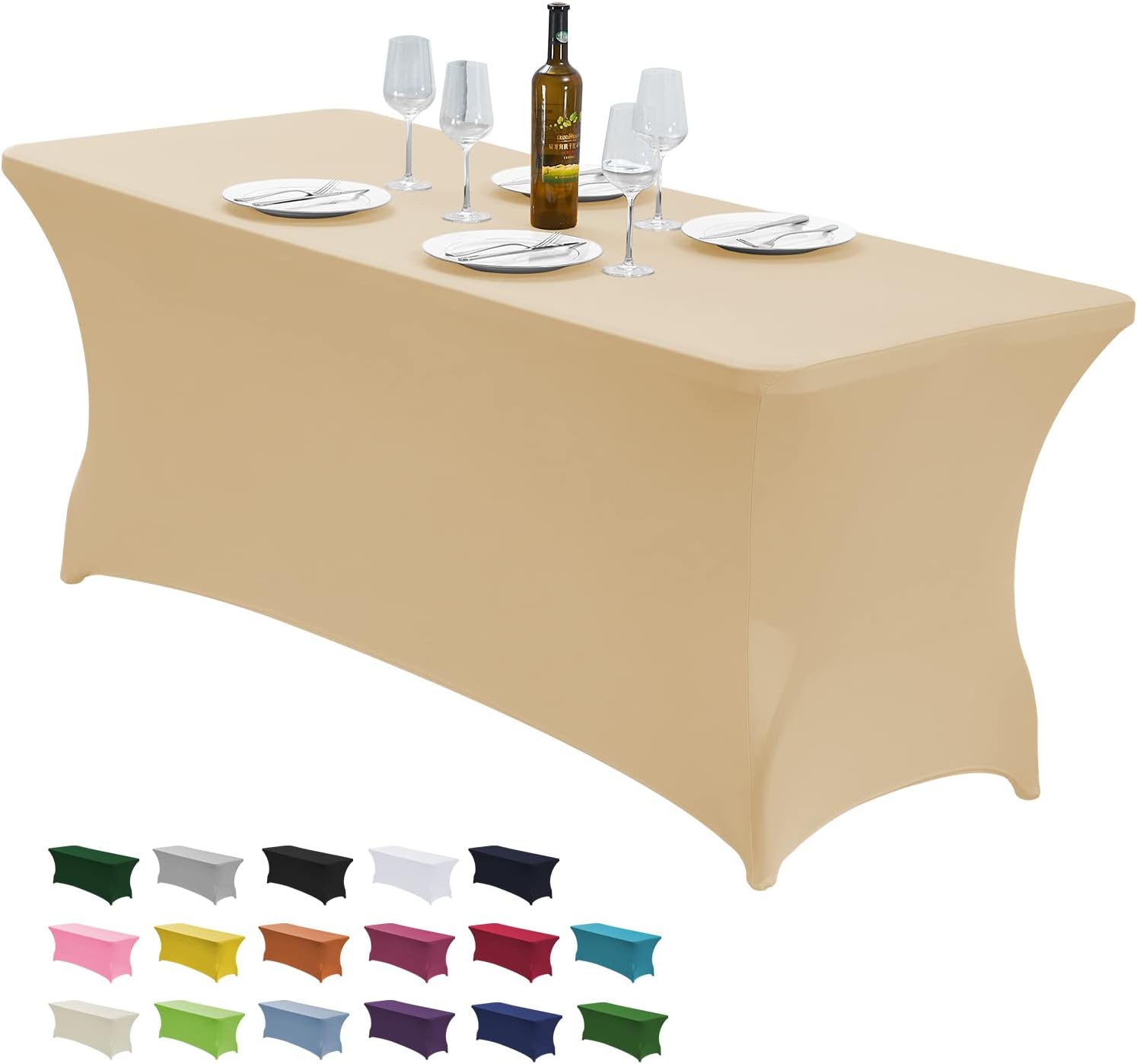CWK 6FT Stretch Spandex Table Cover for Rectangular Tables - Elastic Fitted Tablecloth for Folding Tables,Wrinkle Resistant Table Cloth for Parties, Weddings, Banquets & Events (Champagne)