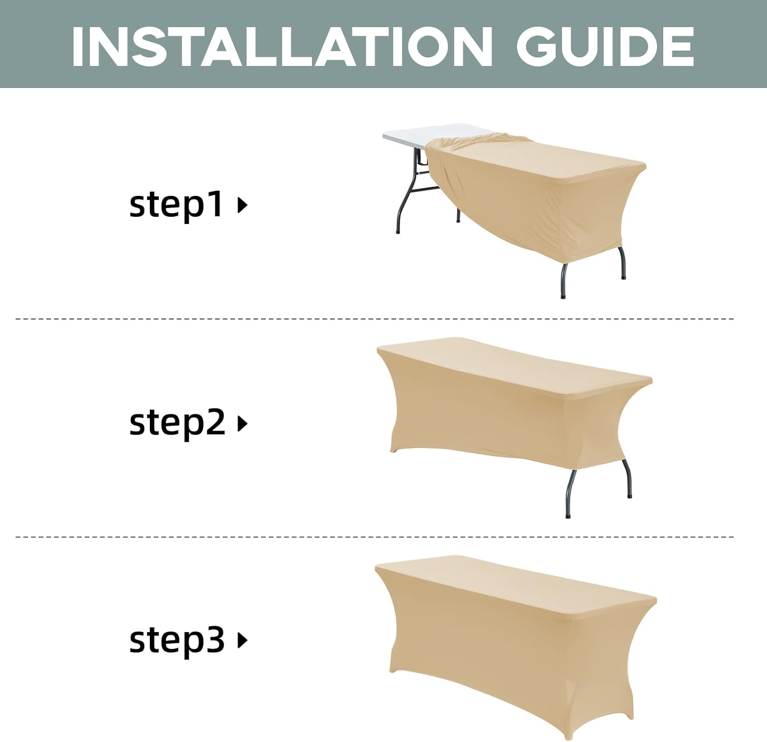 - [Easy To Set Up]: Our table cover is easy for you to set up,just wrap around your table, put 4 table legs into Elastic leg pockets,and ensuring that every part of the rectangular table is covered and spandex table cloth cover is displayed uniformly;It can be used for both indoors and outdoors