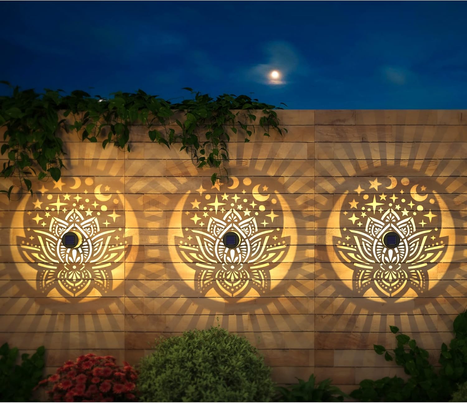 - Good Decoration: 10 lumens of warm yellow light. The small fence solar lights can project a unique and beautiful lotus pattern. In a dim environment, the solar lights can illuminate a corner of the fence or the wall and create a beautiful and warm atmosphere. They are very suitable as holiday decorations and gifts for relatives and friends
