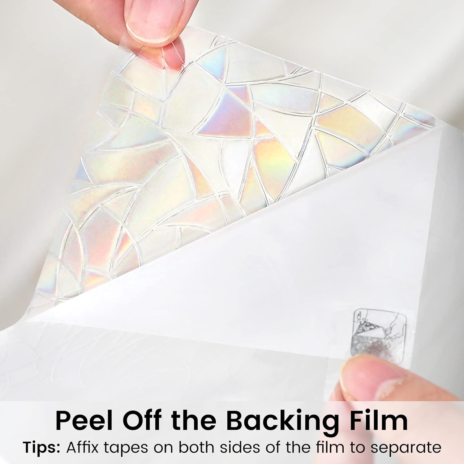- Rainbow Effect: Crafted by 3D laser process, this rainbow prism window film will catch the light and create a rainbow effect when the sun hits the decal. The decorative window cling itself does not actually have any color, and the rainbow effect depends on the angle and intensity of the sunlight. Also, it classes up the room and makes the window look like stained glass without the expense of a custom stained glass window