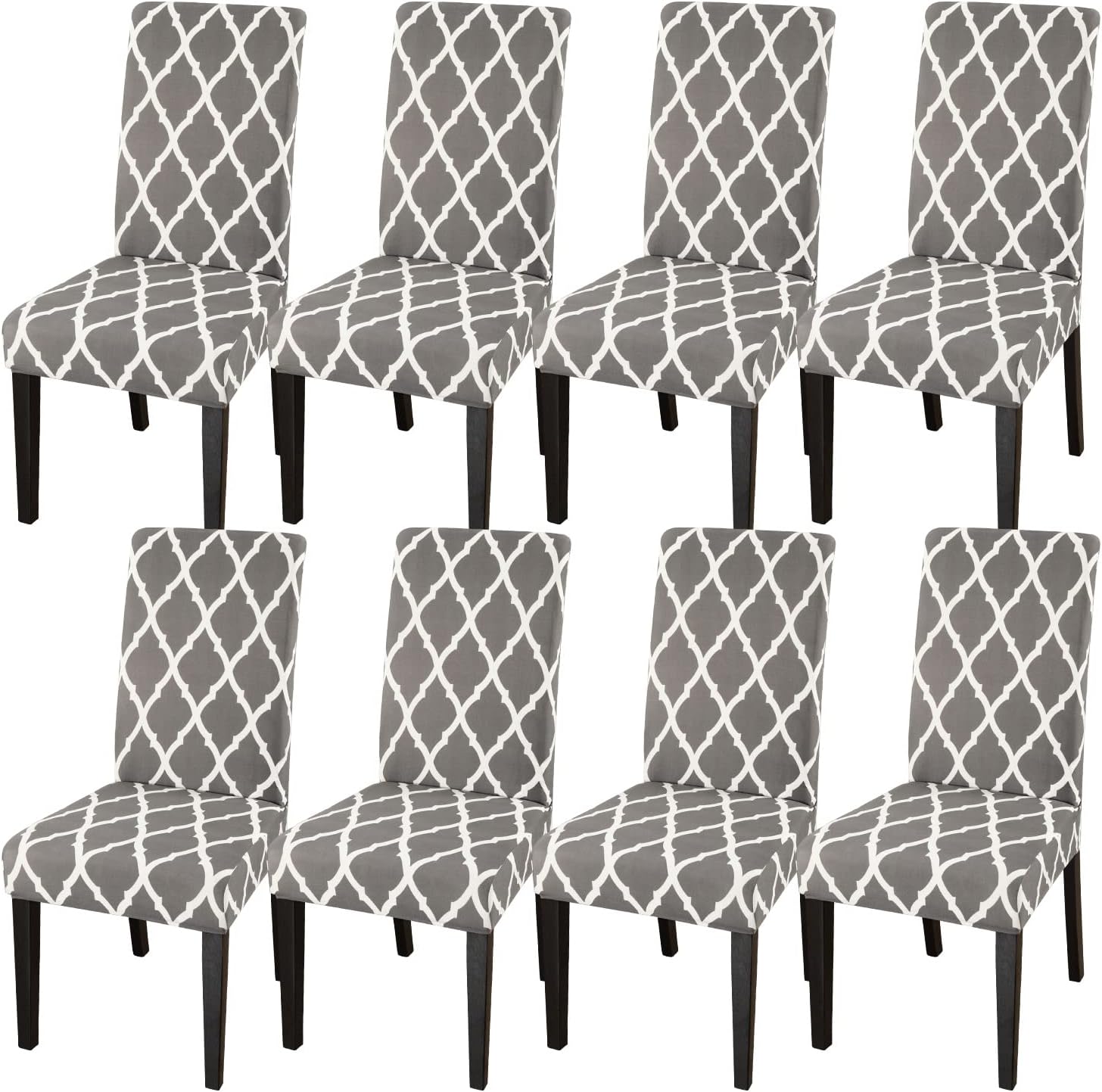 JQinHome Dining Room Chair Covers Set of 8, High Stretch Chair Slipcover Removable Washable Chair Seat Protector Cover for Home Party Hotel Wedding Ceremony (Grey White)