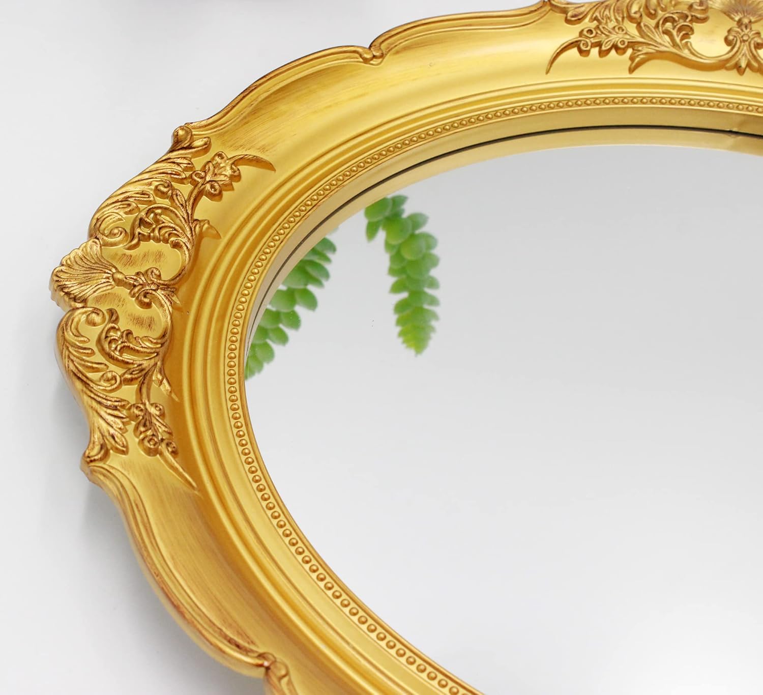 14.8 x 13.1 inch Oval Wall Mirror Vintage Style Wall Mounted (Gold)